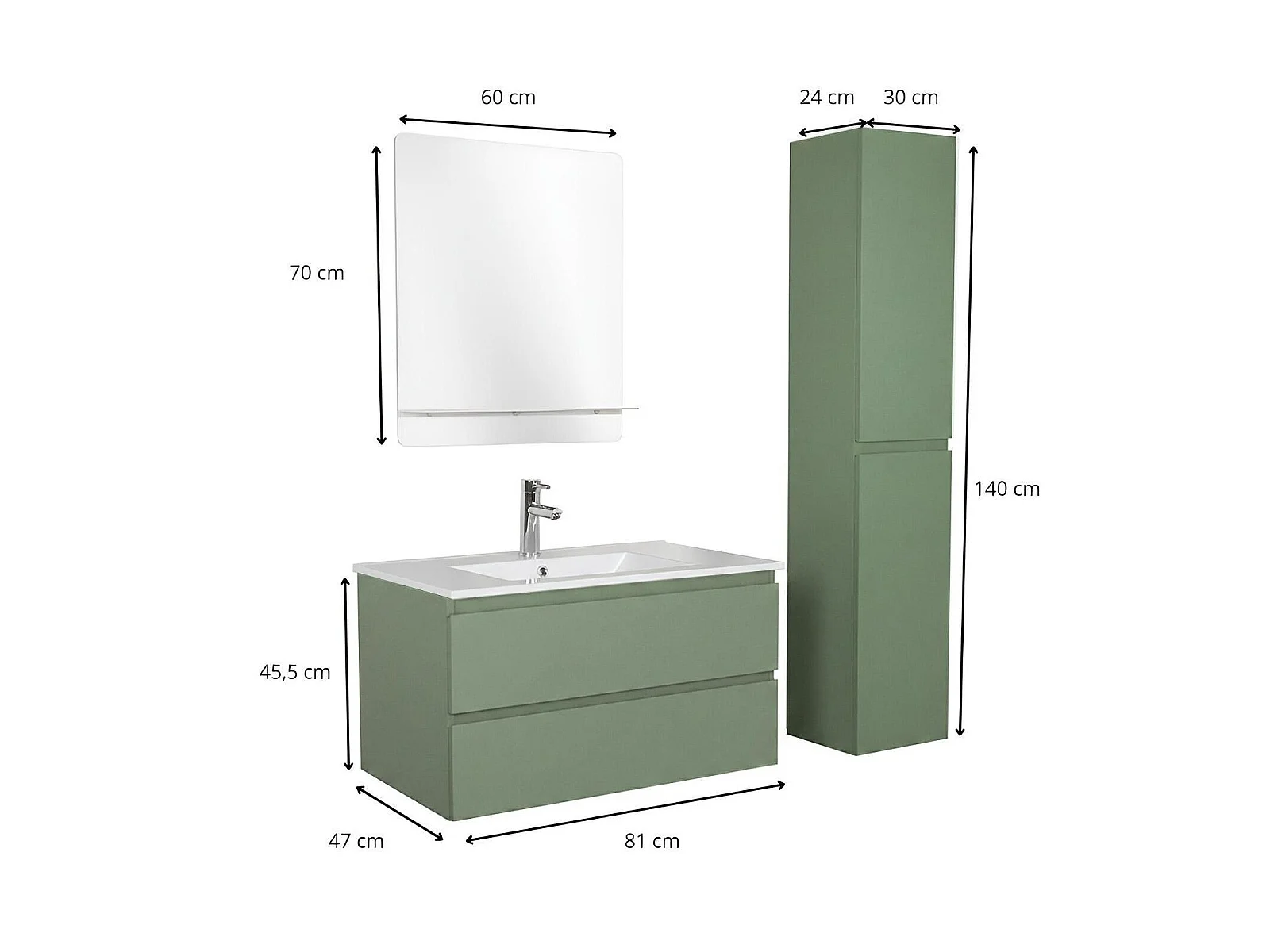 Eenvoudig meubel + kraan + spiegel + SORRENTO-kolom