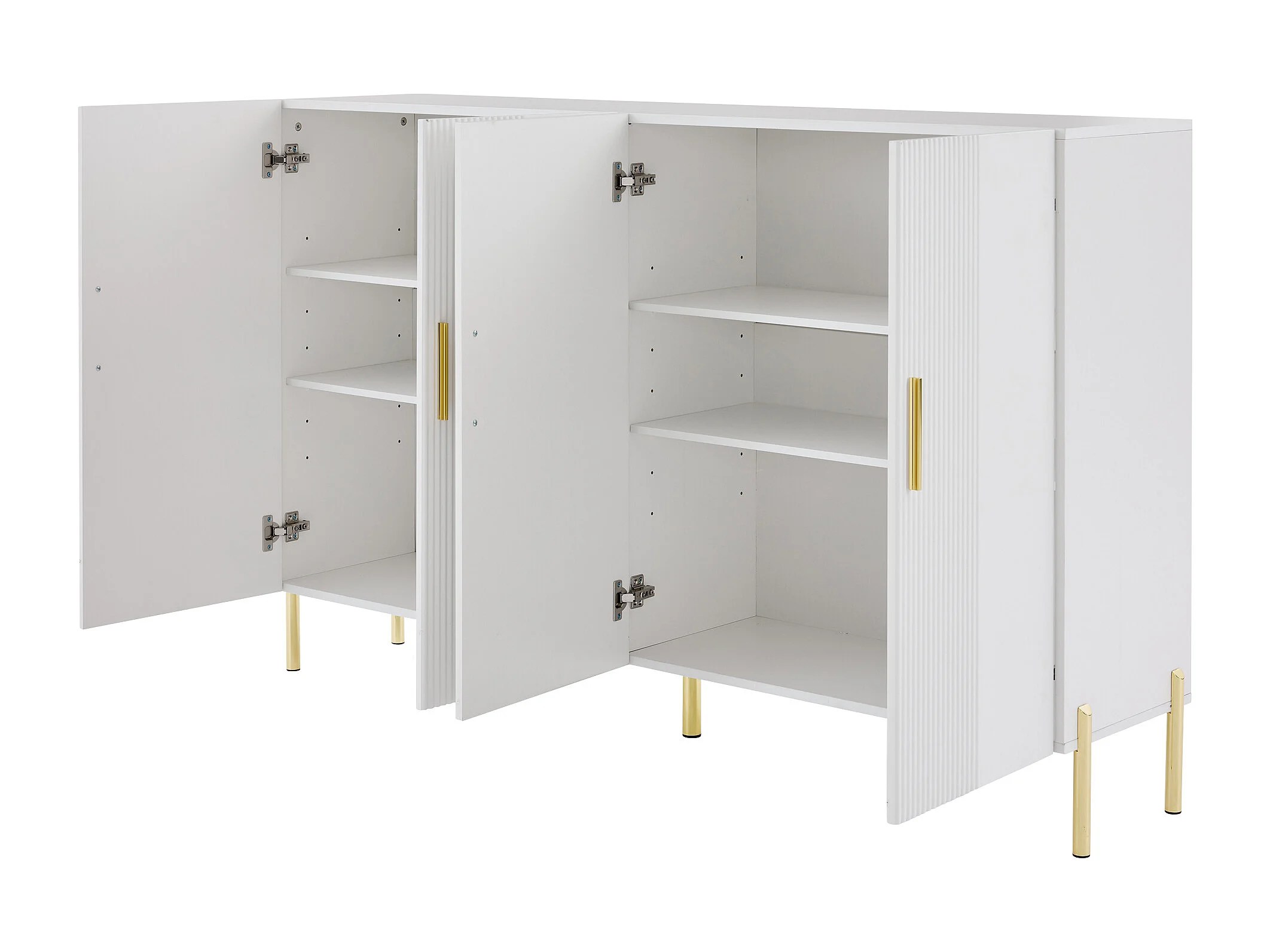 Eetkamerdressoir van hout met 4 deuren en opbergruimte - metalen handgrepen en poten - wit (160x36,5x100 cm)