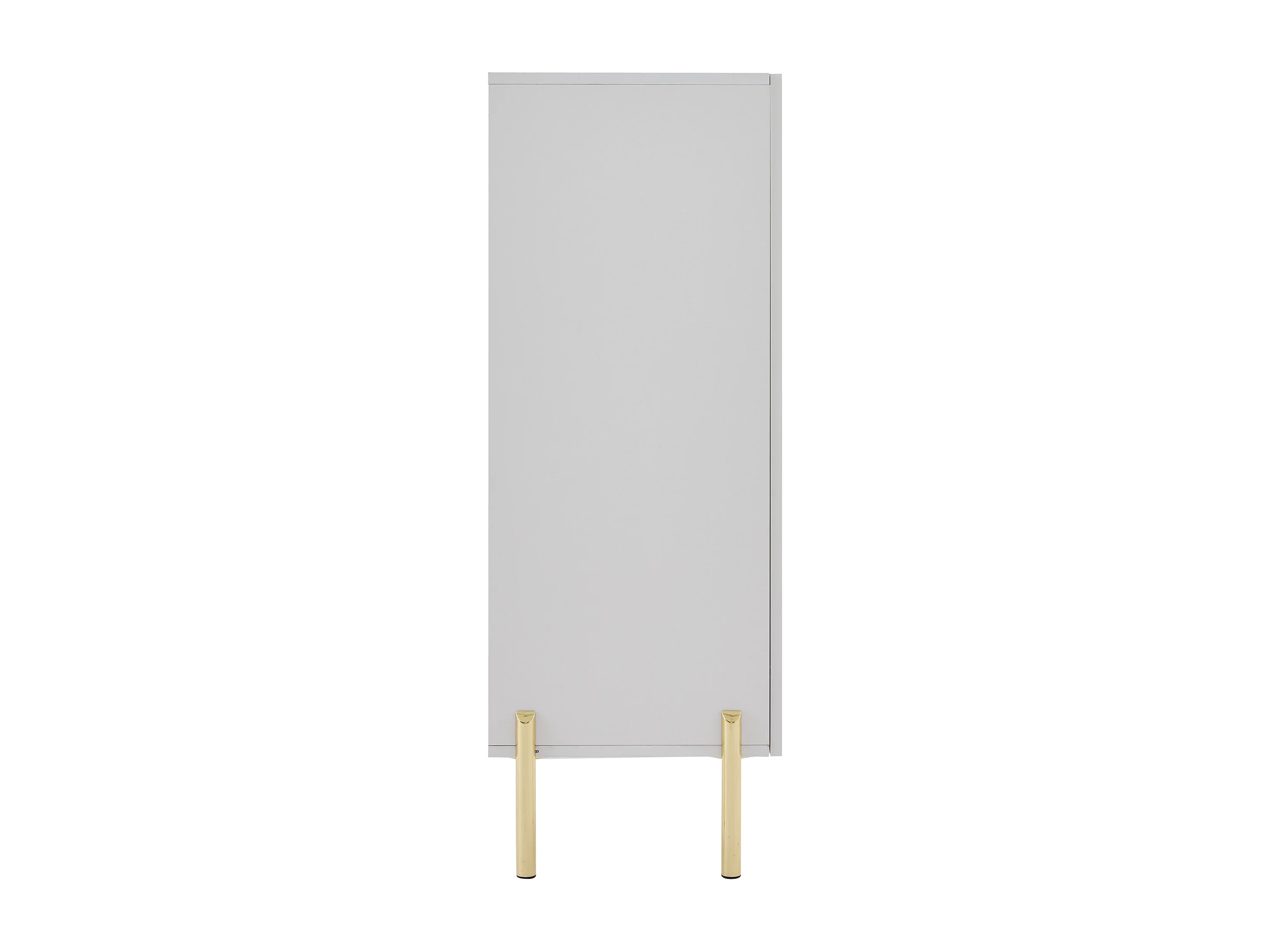Eetkamerdressoir van rotan met 2 deuren en 3 opbergladen - gouden handgrepen en poten - wit (120x40x90 cm)