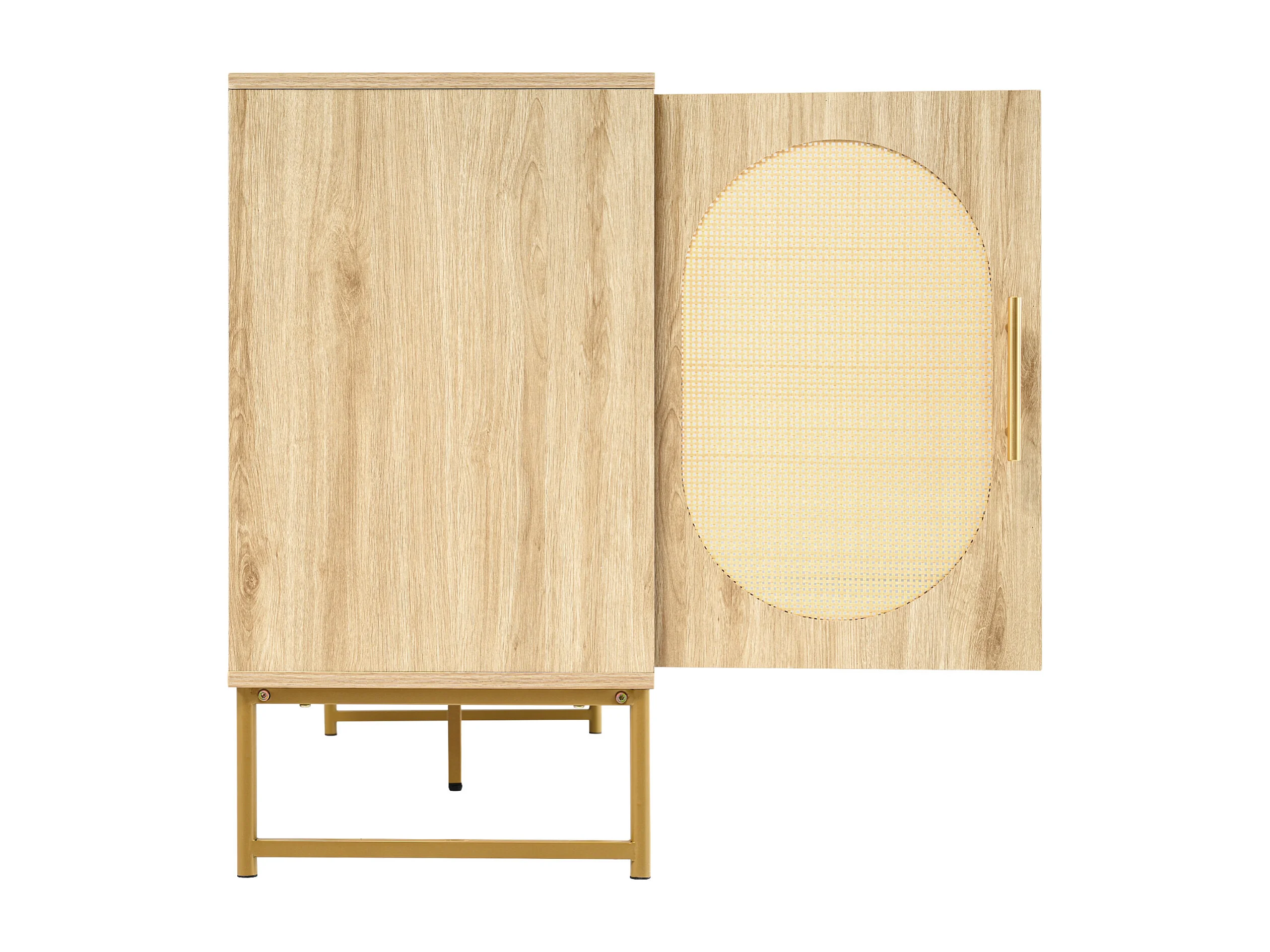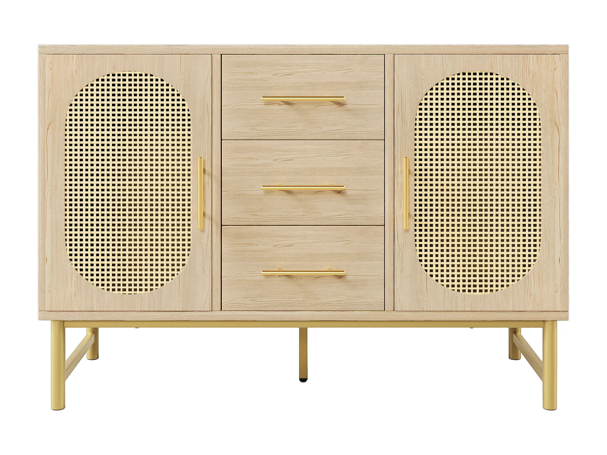 Eetkamerdressoir van rotan met 2 deuren en 3 laden - houten opbergmeubel - eiken (120x40x74 cm)