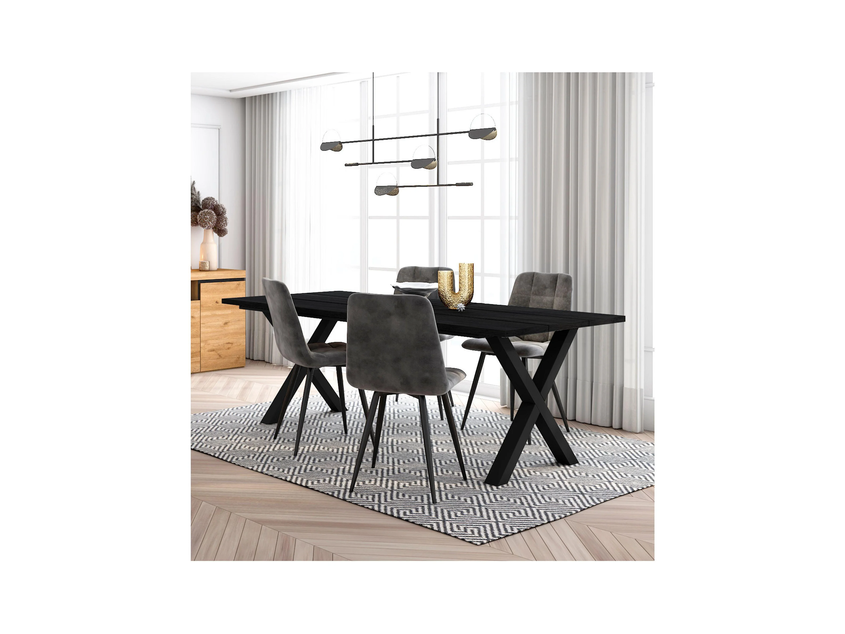 Eetkamermeubels, Tafel, 194x90x75cm, Zwart, Industriële stijl, Tafel, Set van 4 Eetkamerstoelen, Gestoffeerde Stoel