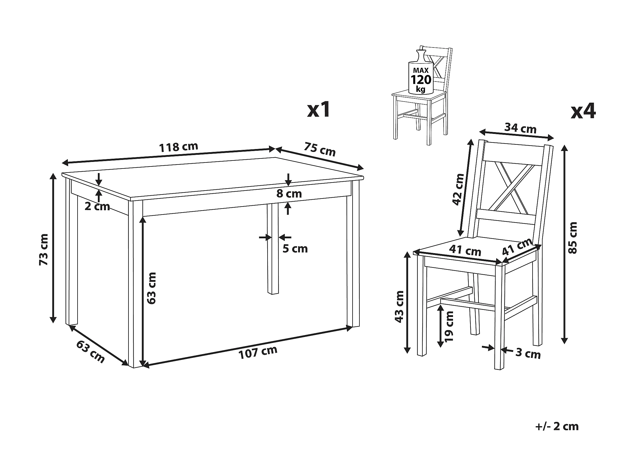 Eetkamerset MOANA Dennenhout Wit 4-zitter