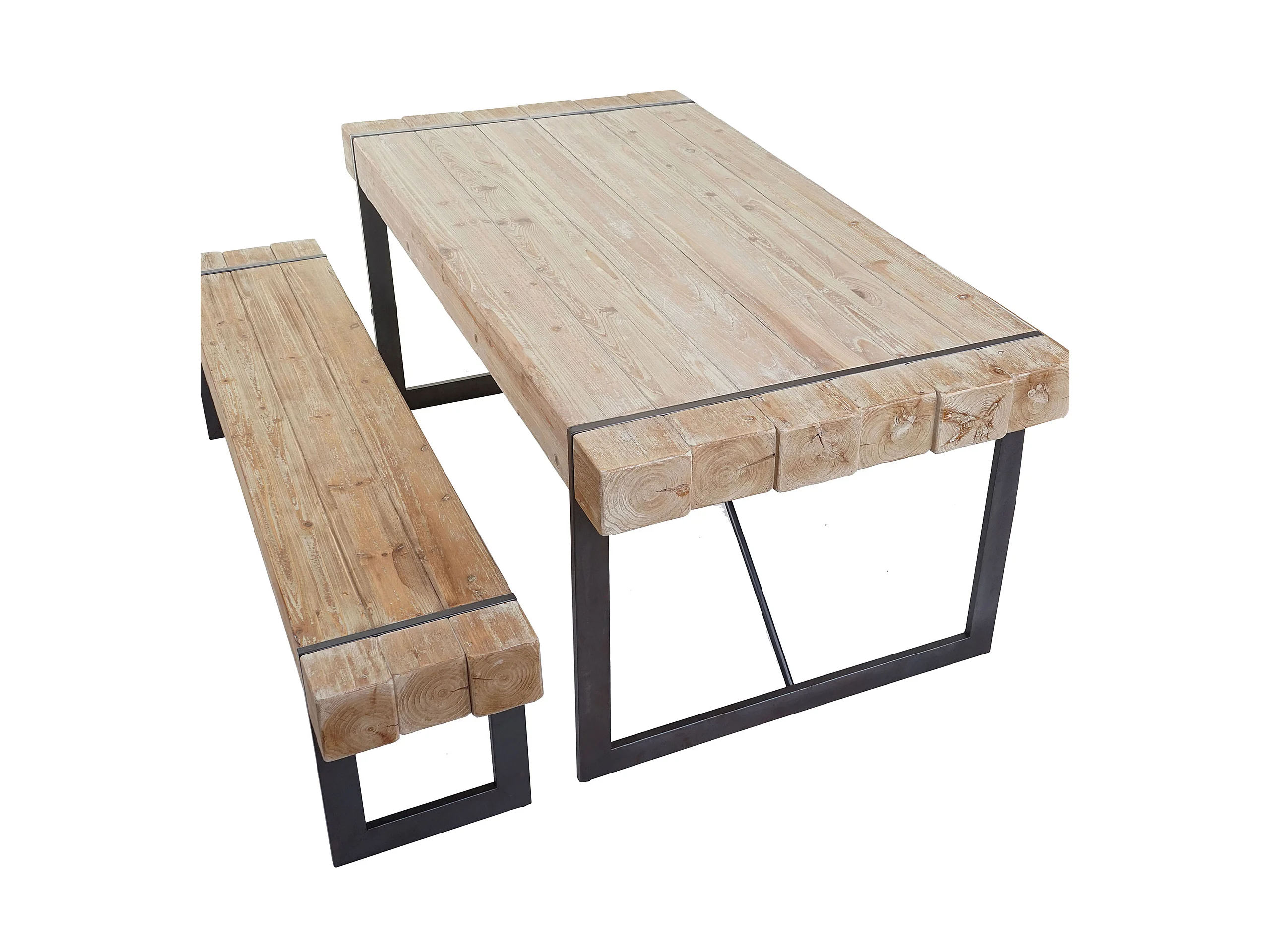 3-delige Eettafel en bankenset bewerkt hout oud houtkleurig