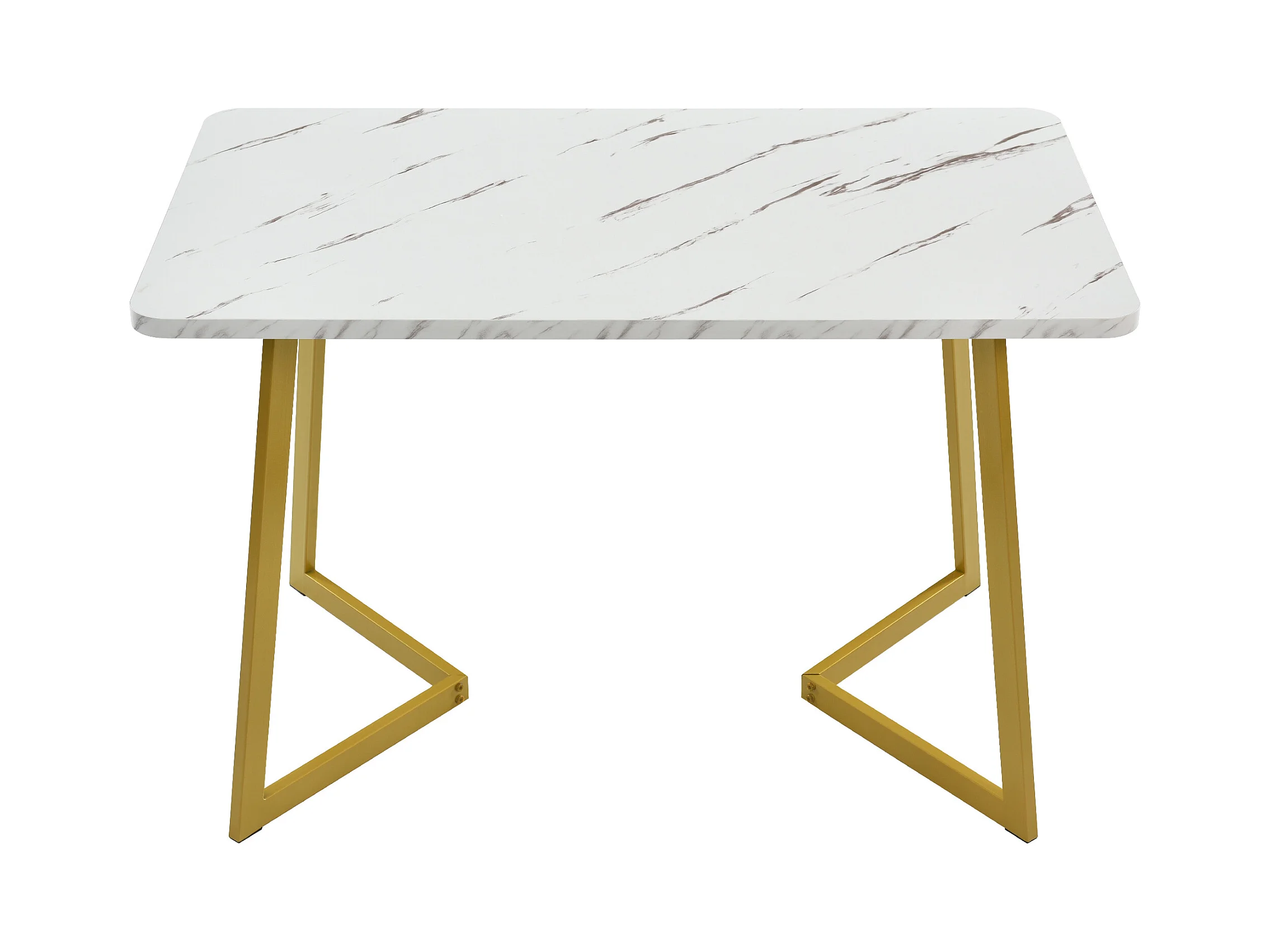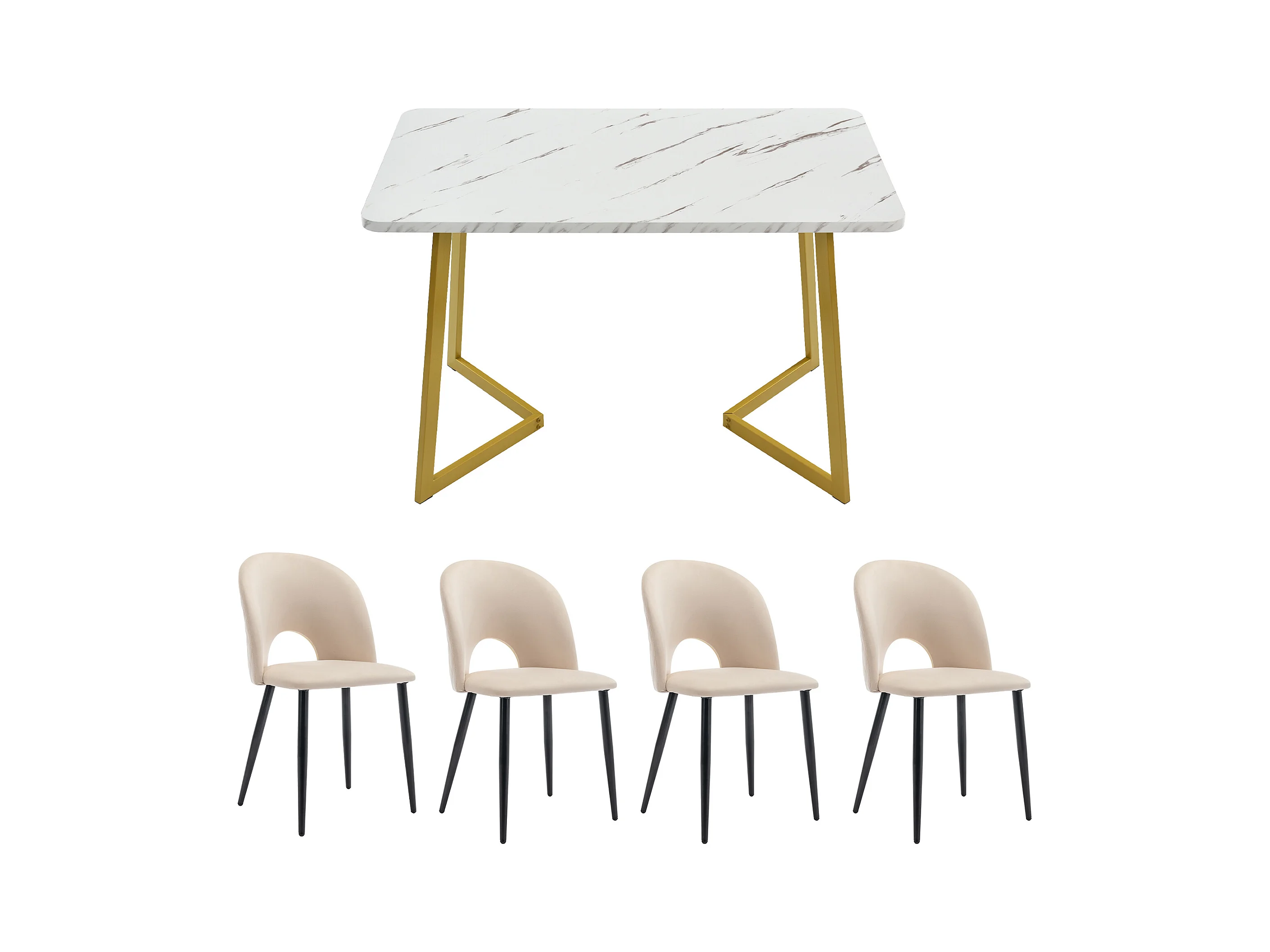 Eetkamerset van 5 stuks, rechthoekige tafel, 4 beige fluwelen stoelen met ruitpatroon, verstelbare poten, gouden voetjes (117x68x75 cm)