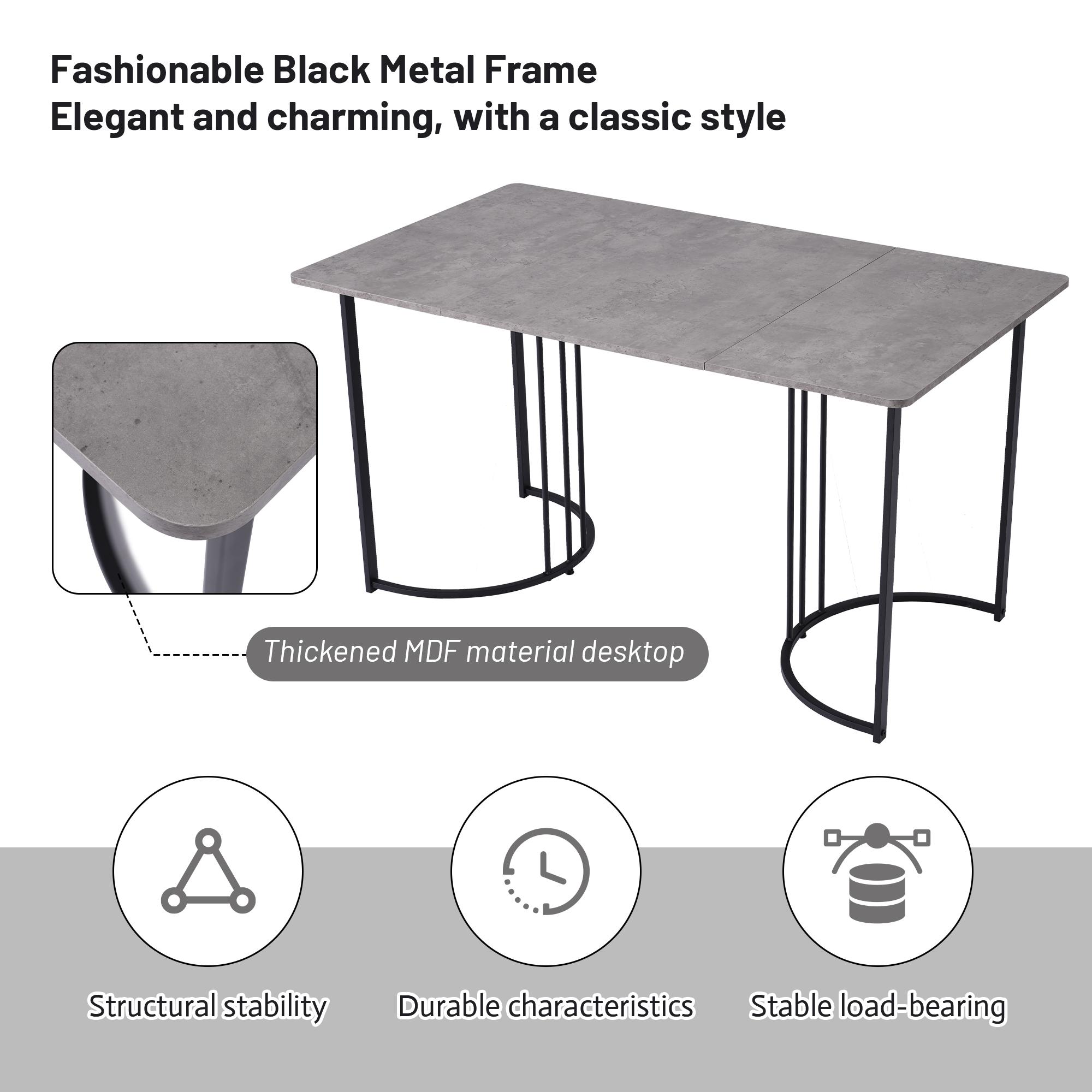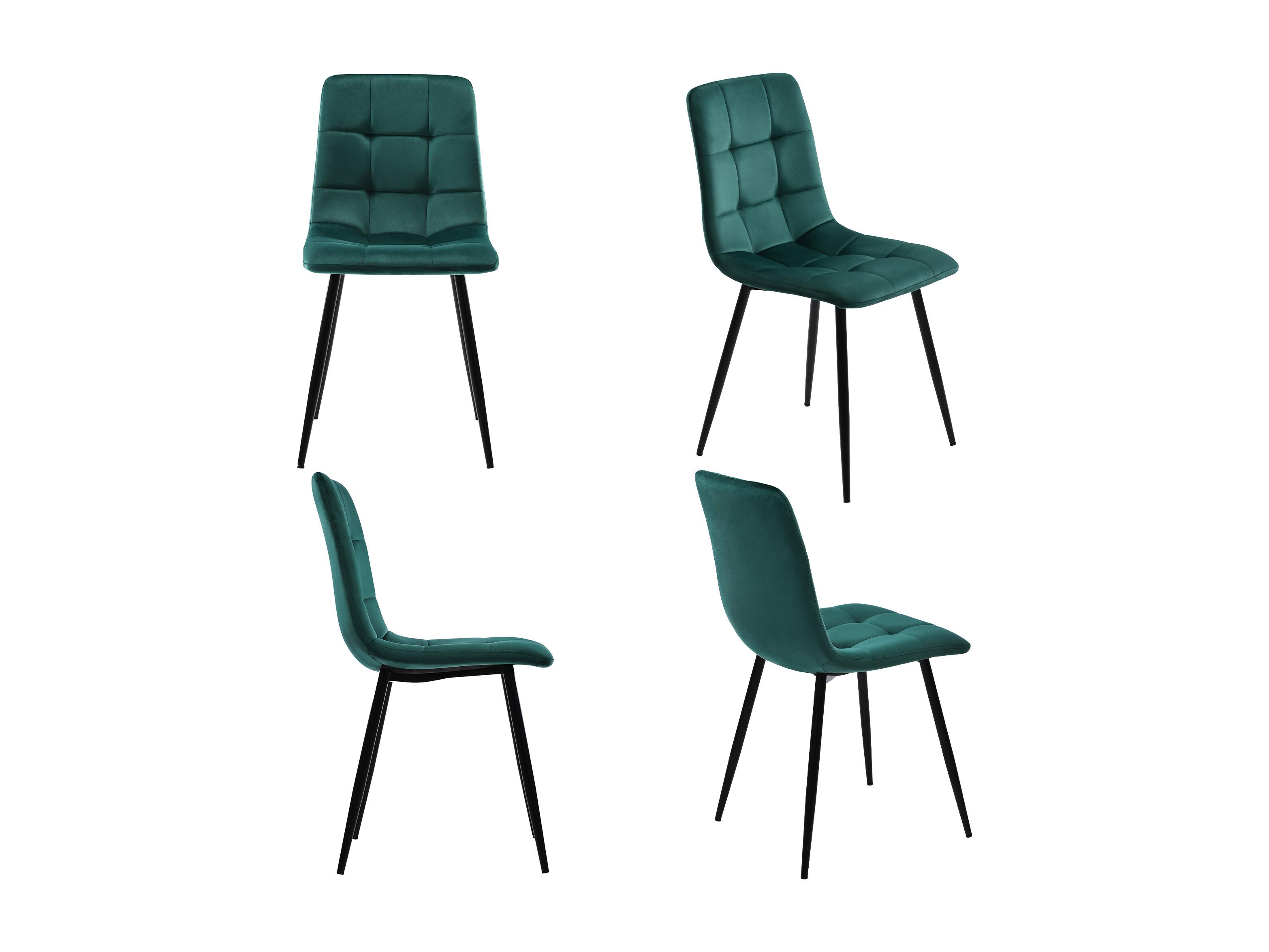 Eetkamerset van 5 stuks – tafel 140×80 cm, grijs MDF-blad met zwarte metalen poten + 4 donkergroene fluwelen stoelen, modern design