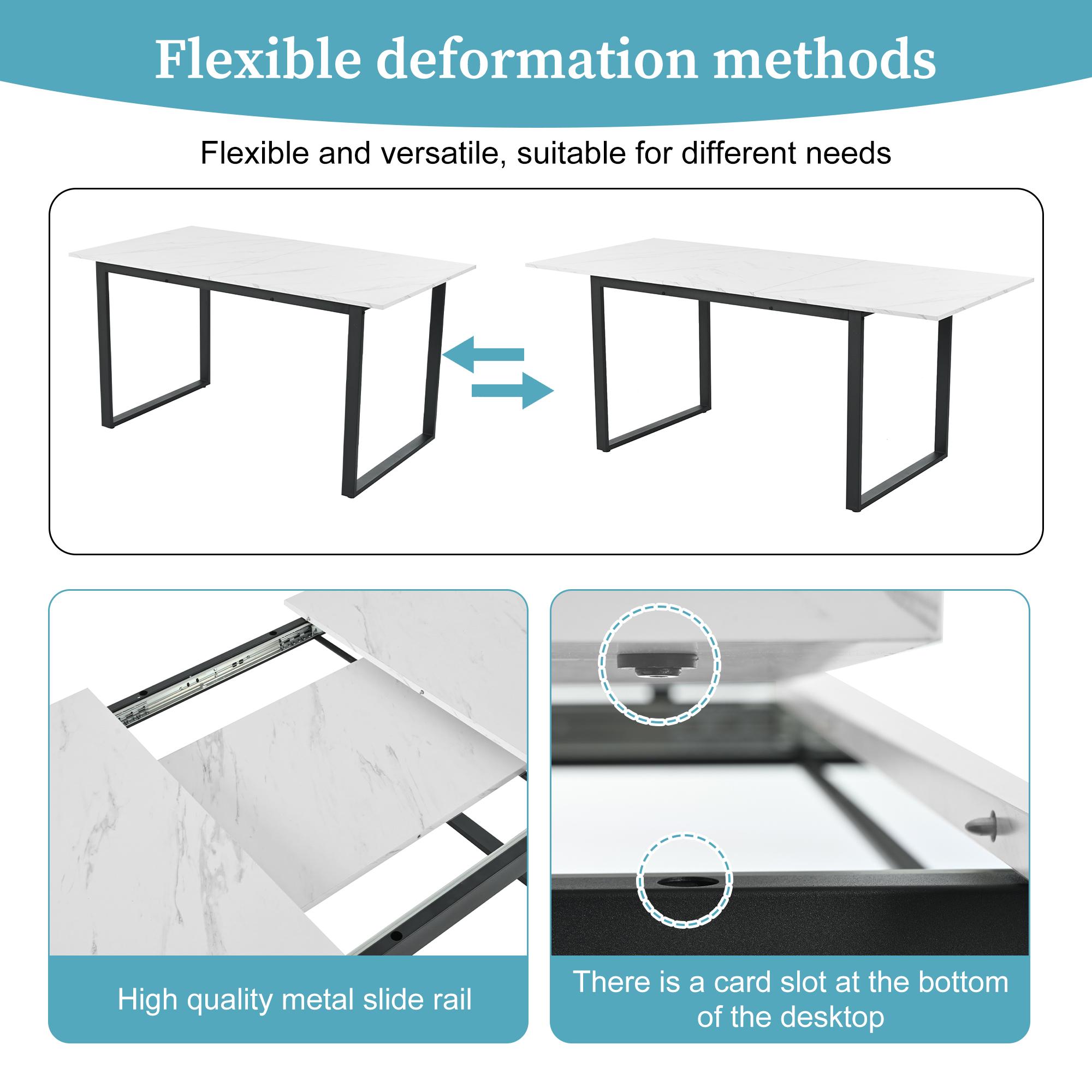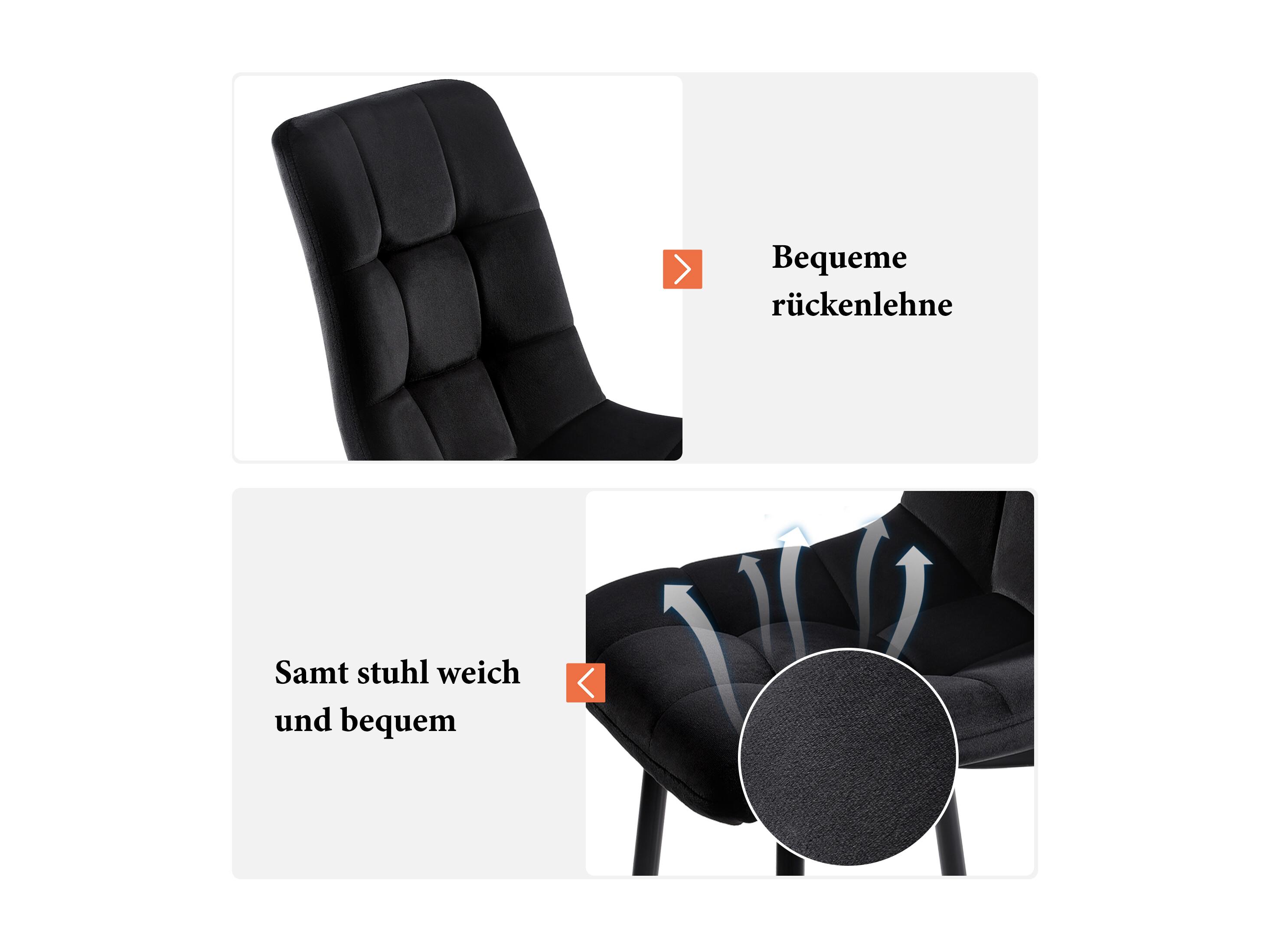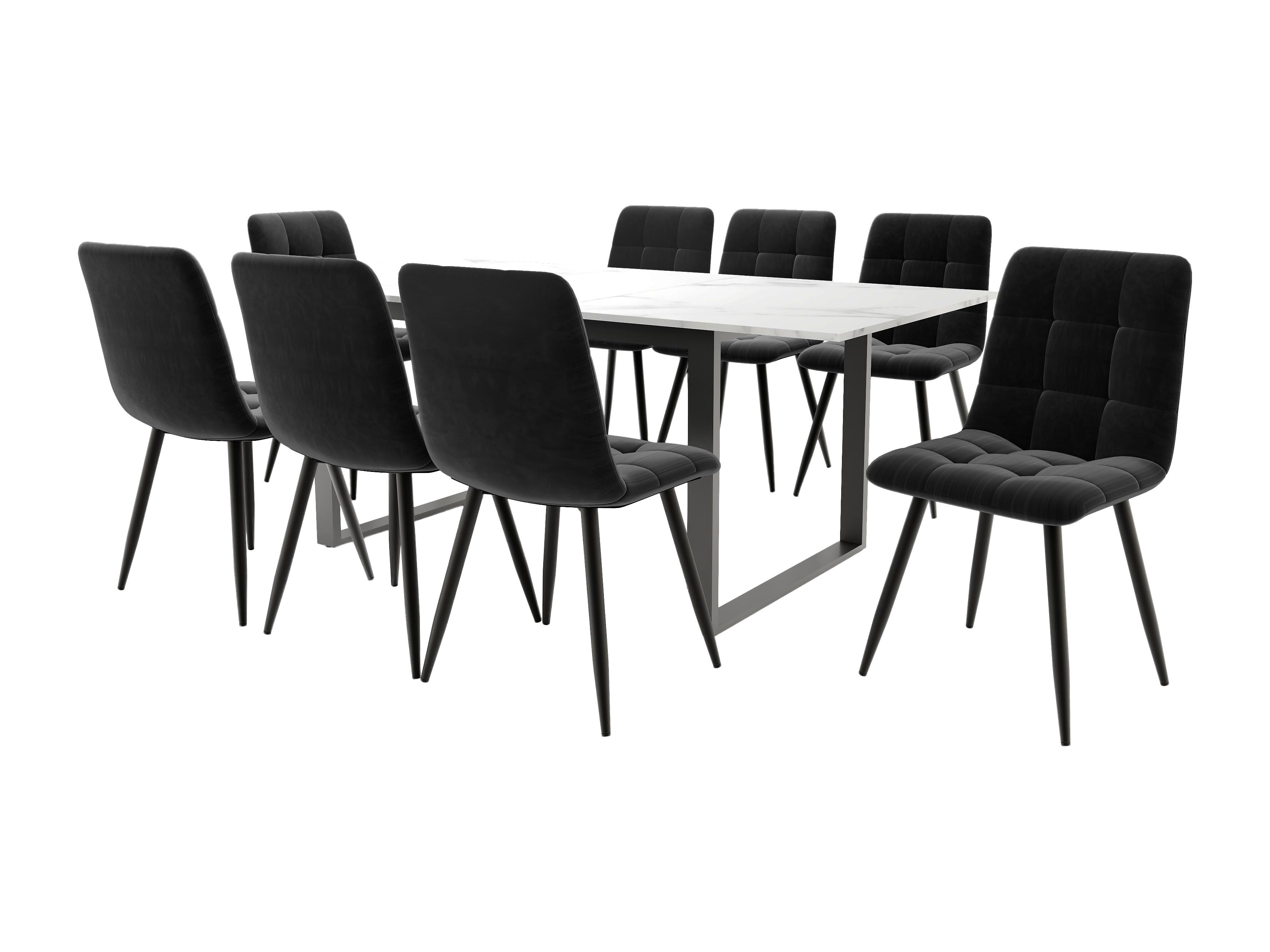Eetkamerset van 9 stuks - Uitschuifbare tafel 140/180×80×75 cm, wit MDF, zwarte poten, met 8 moderne zwarte fluwelen stoelen