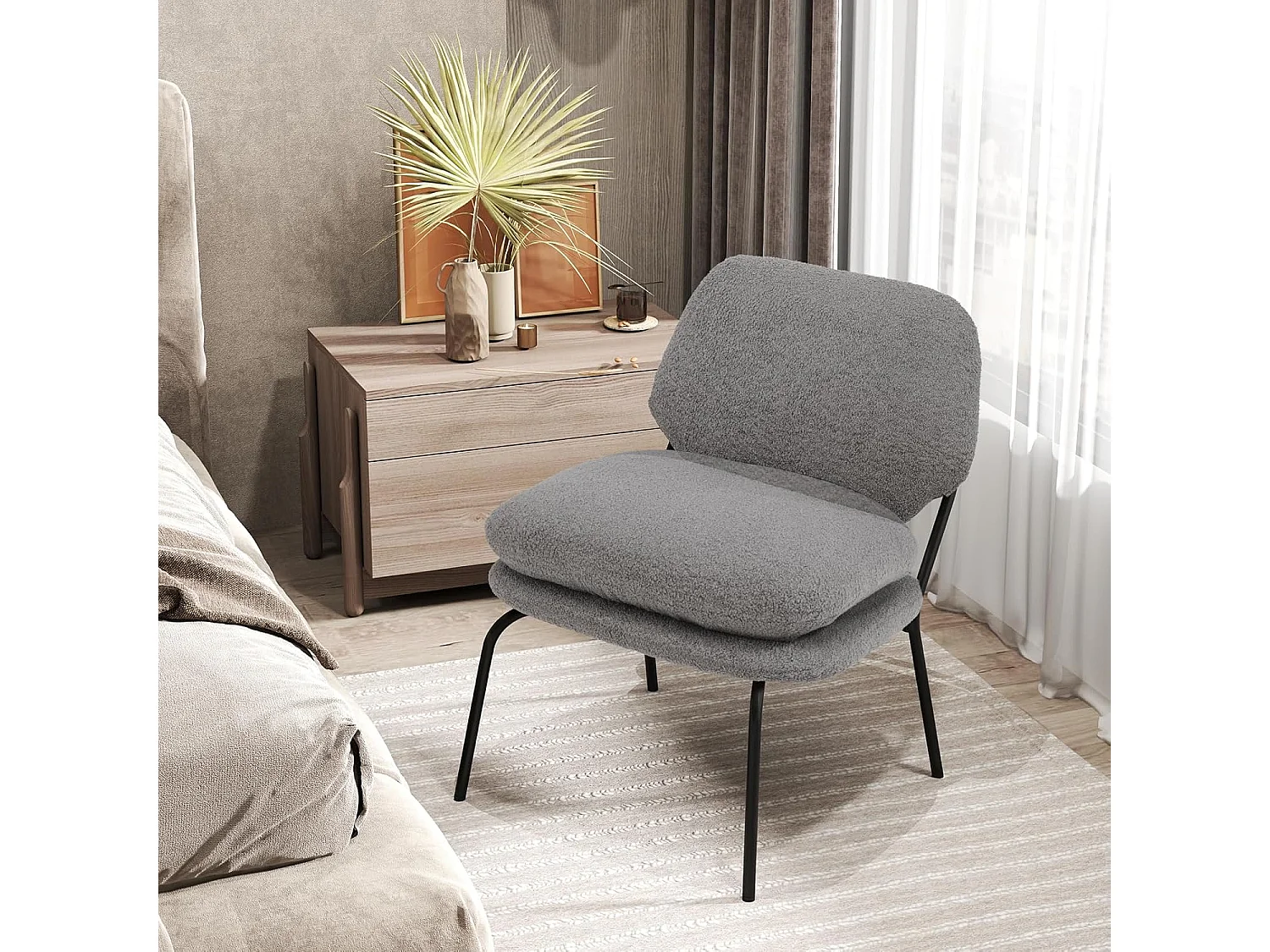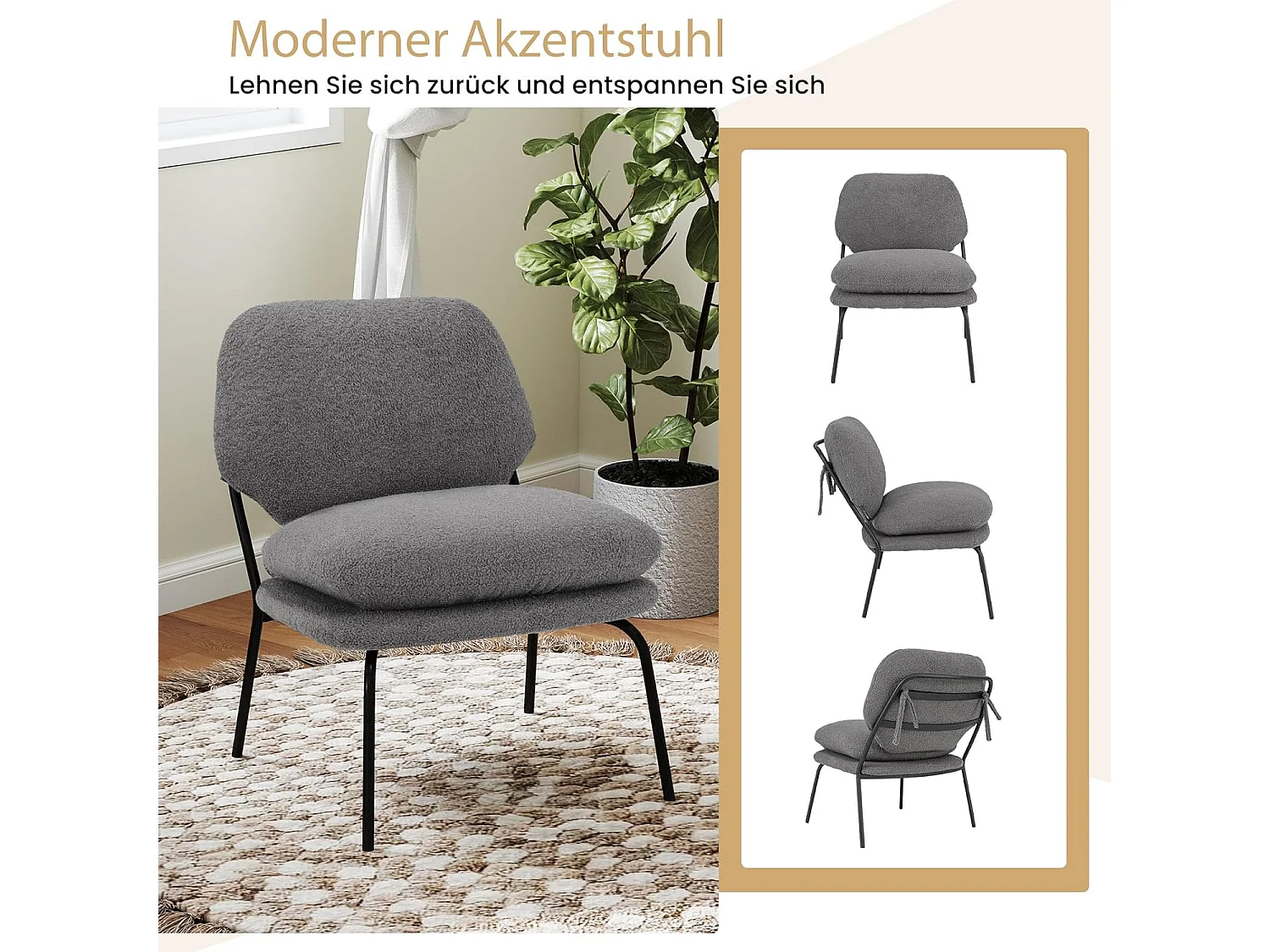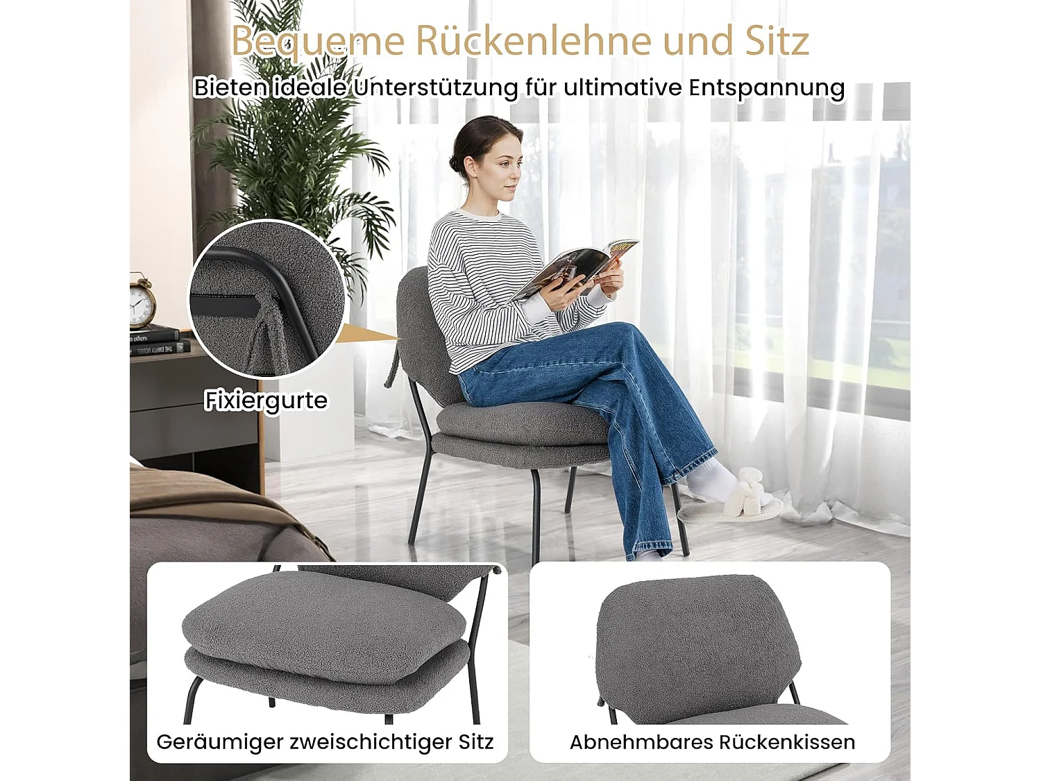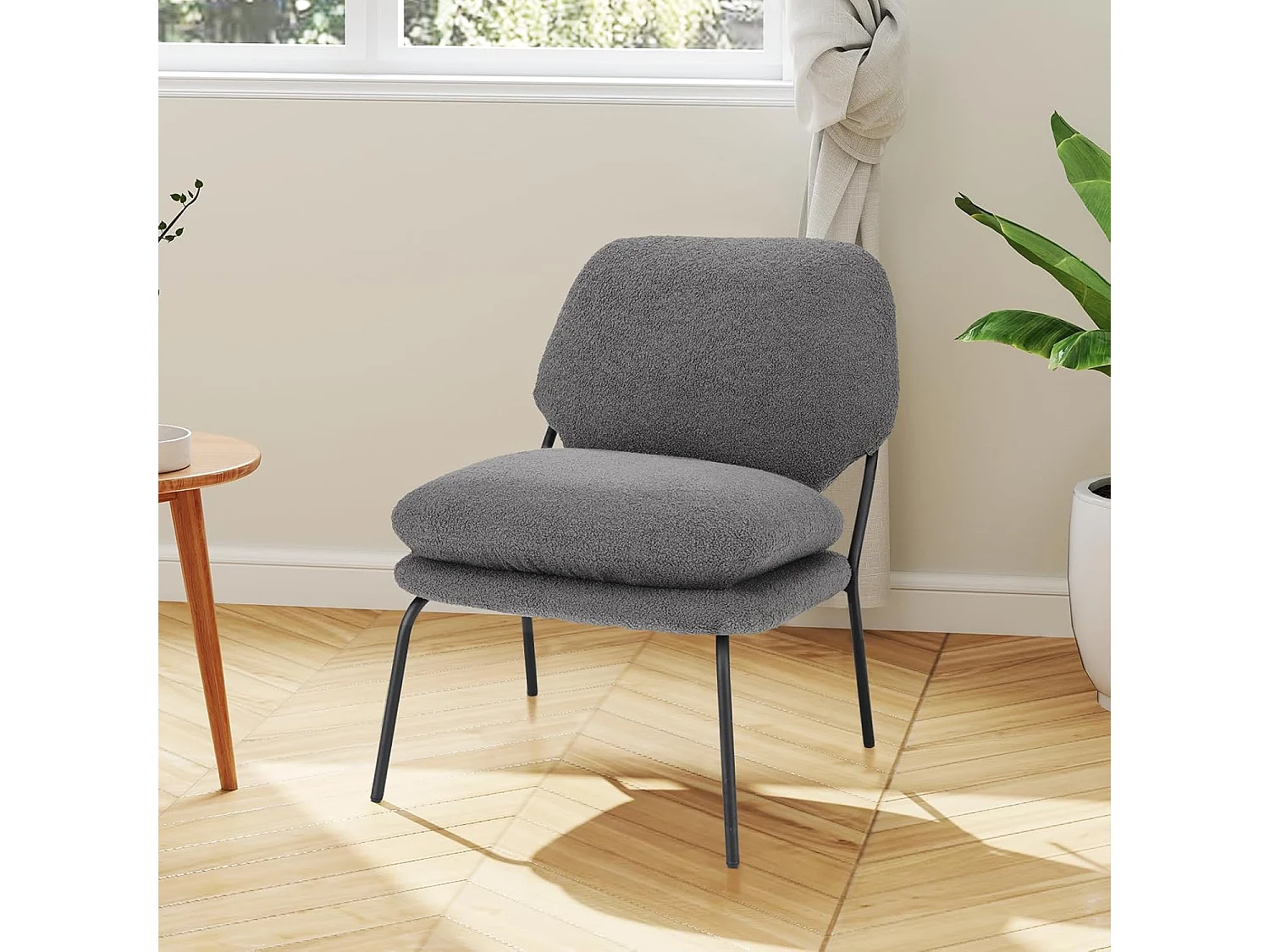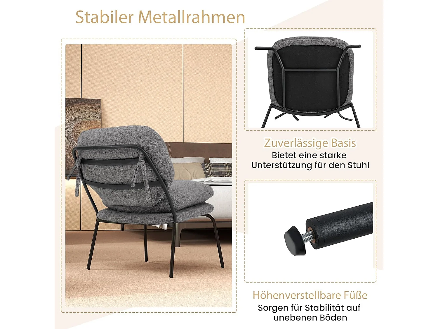 Eetkamerstoel, accentstoel met overtrek van teddyfleece, hoge rug, gestoffeerde stoel, zithoogte 48 cm, woonkamerstoel, keukenstoel, tot 145 kg belastbaarVH34542