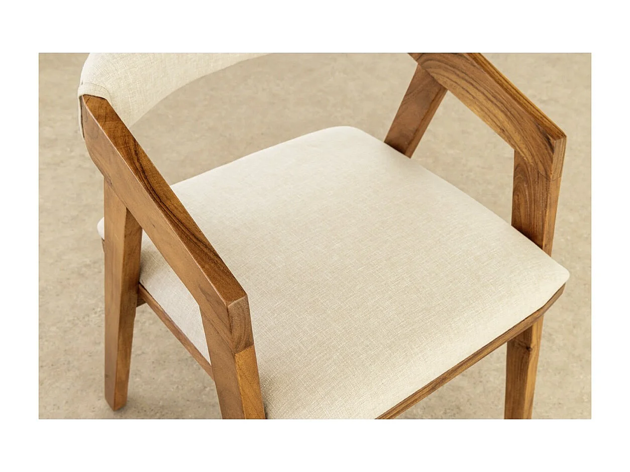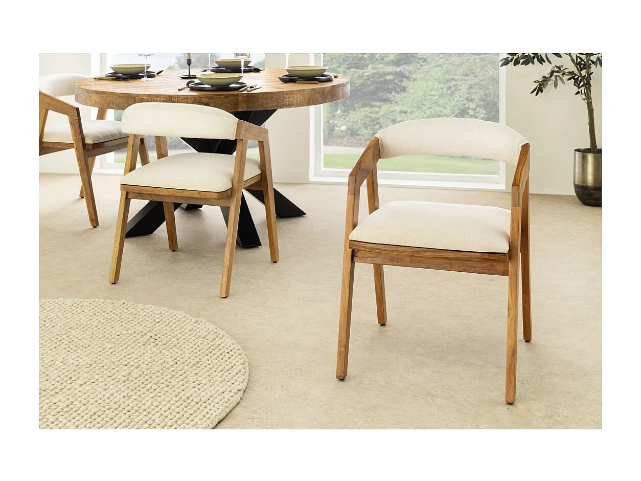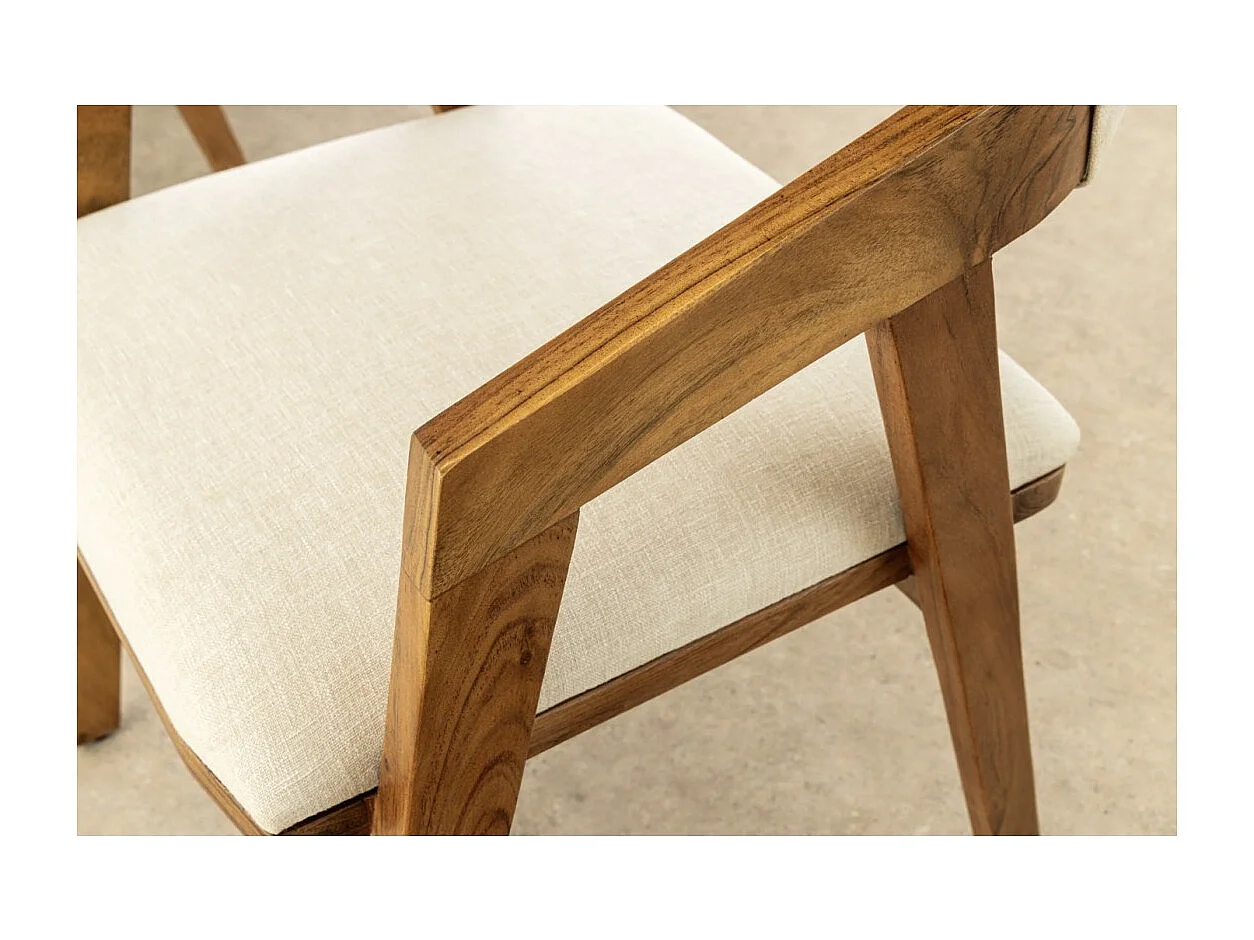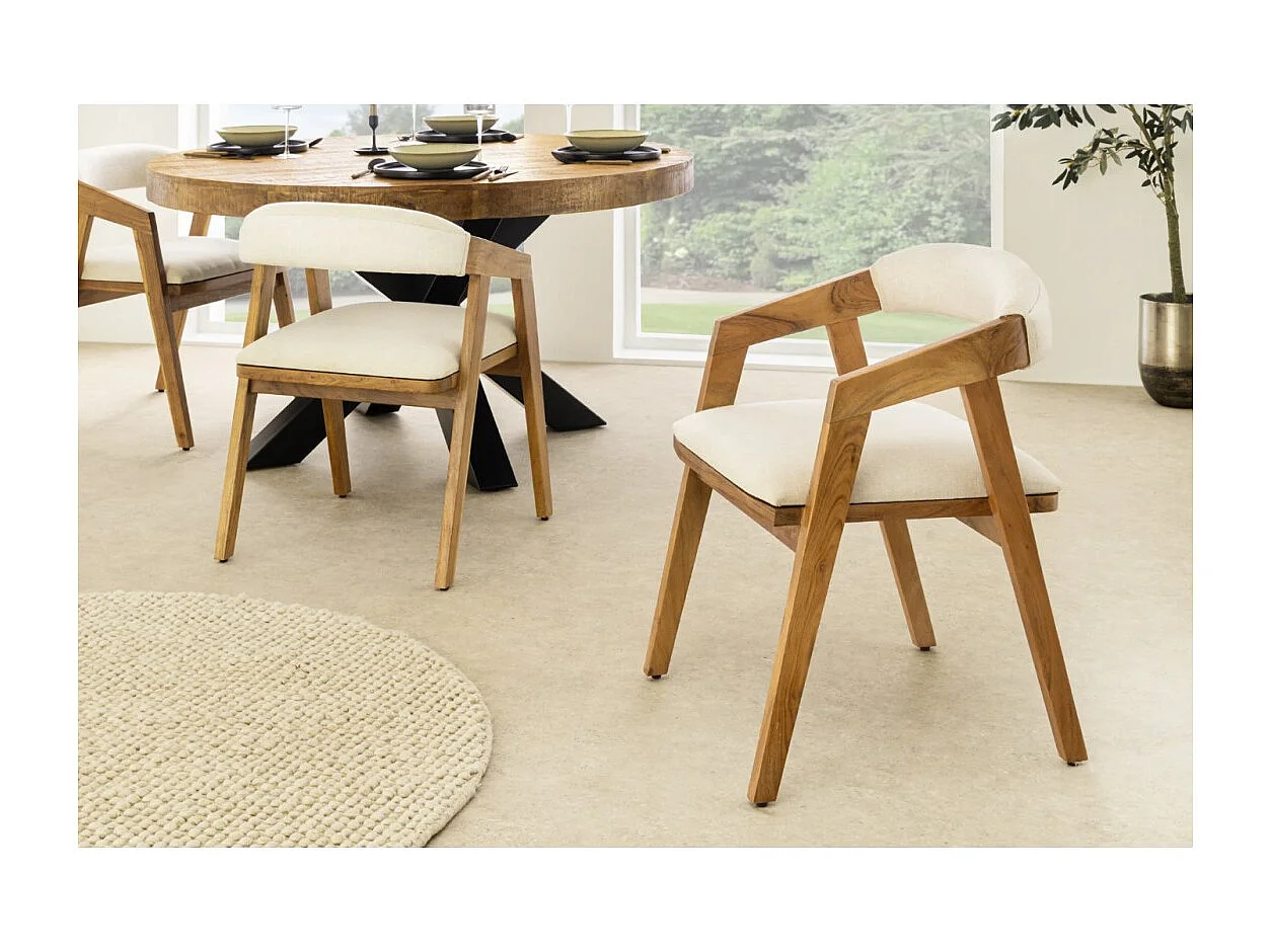 Eetkamerstoel ARKAYA vintage van massief acaciahout en witte stof