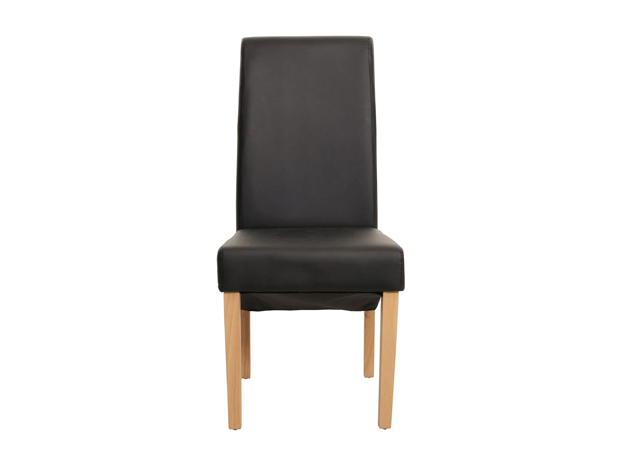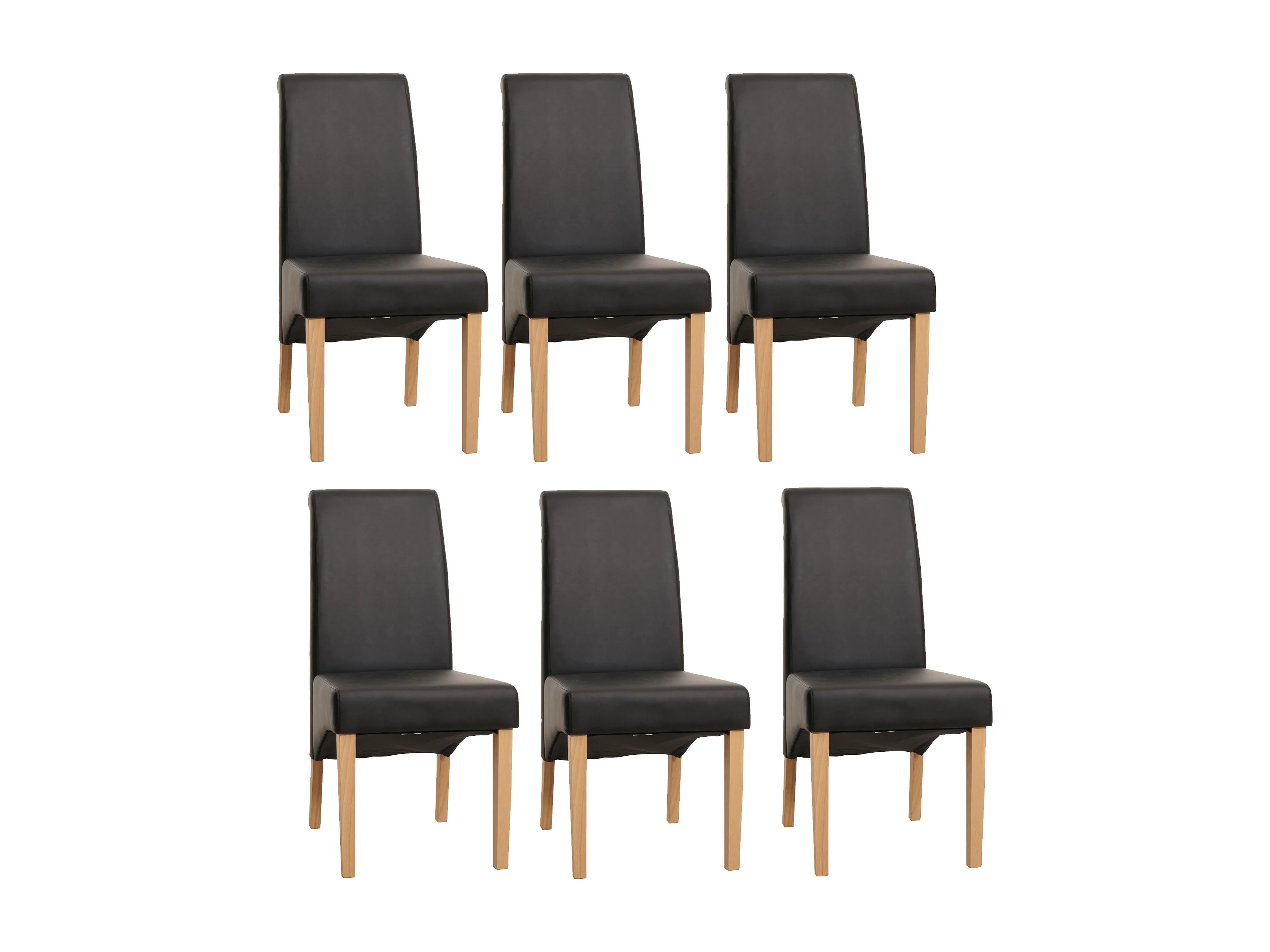 Eetkamerstoel M37 (set van 6), kunstleer mat, zwart, lichtgekleurde poten
