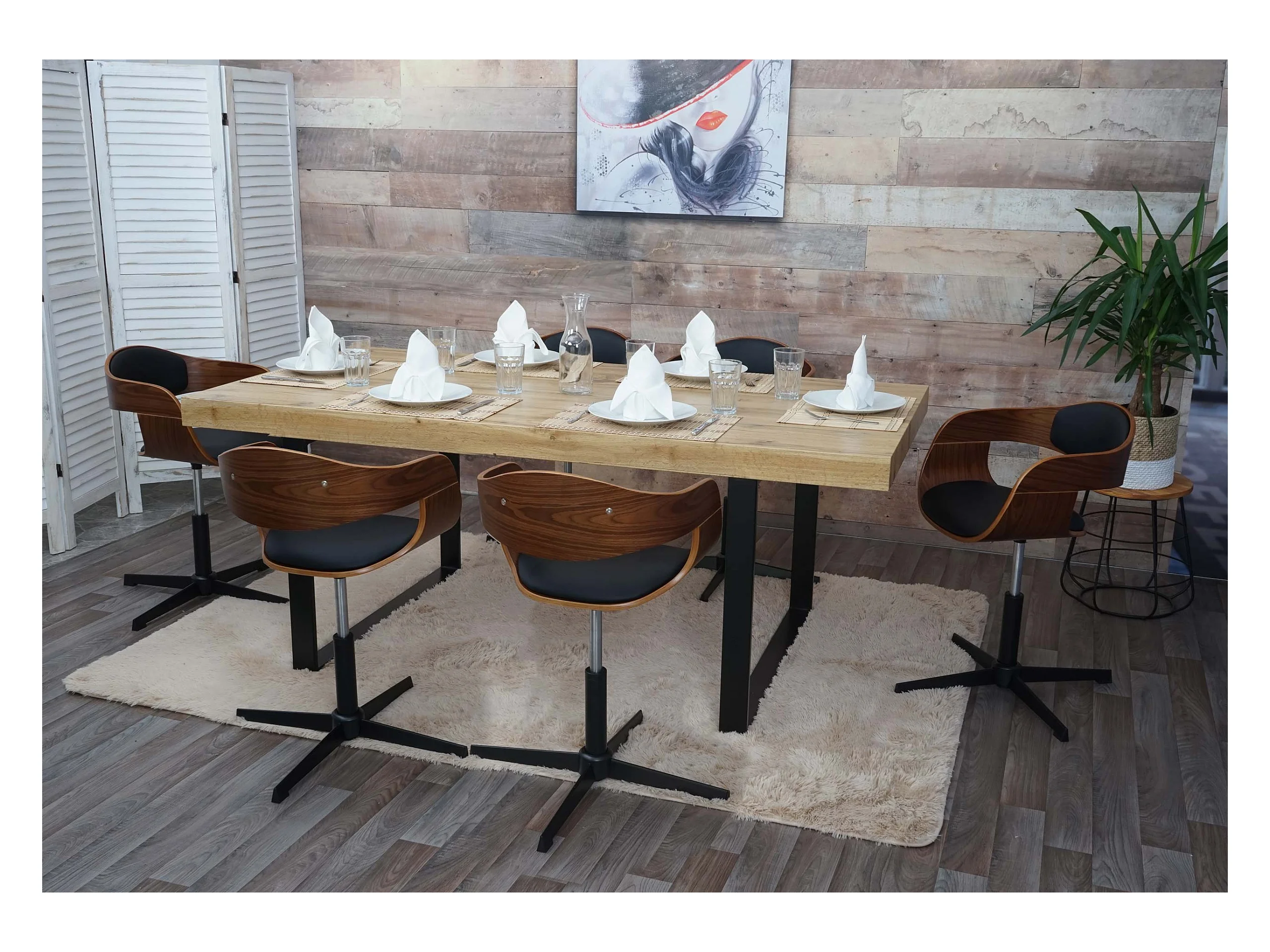 Eetkamerstoel MCW-H46 (set van 6), walnootlook, kunstleer zwart
