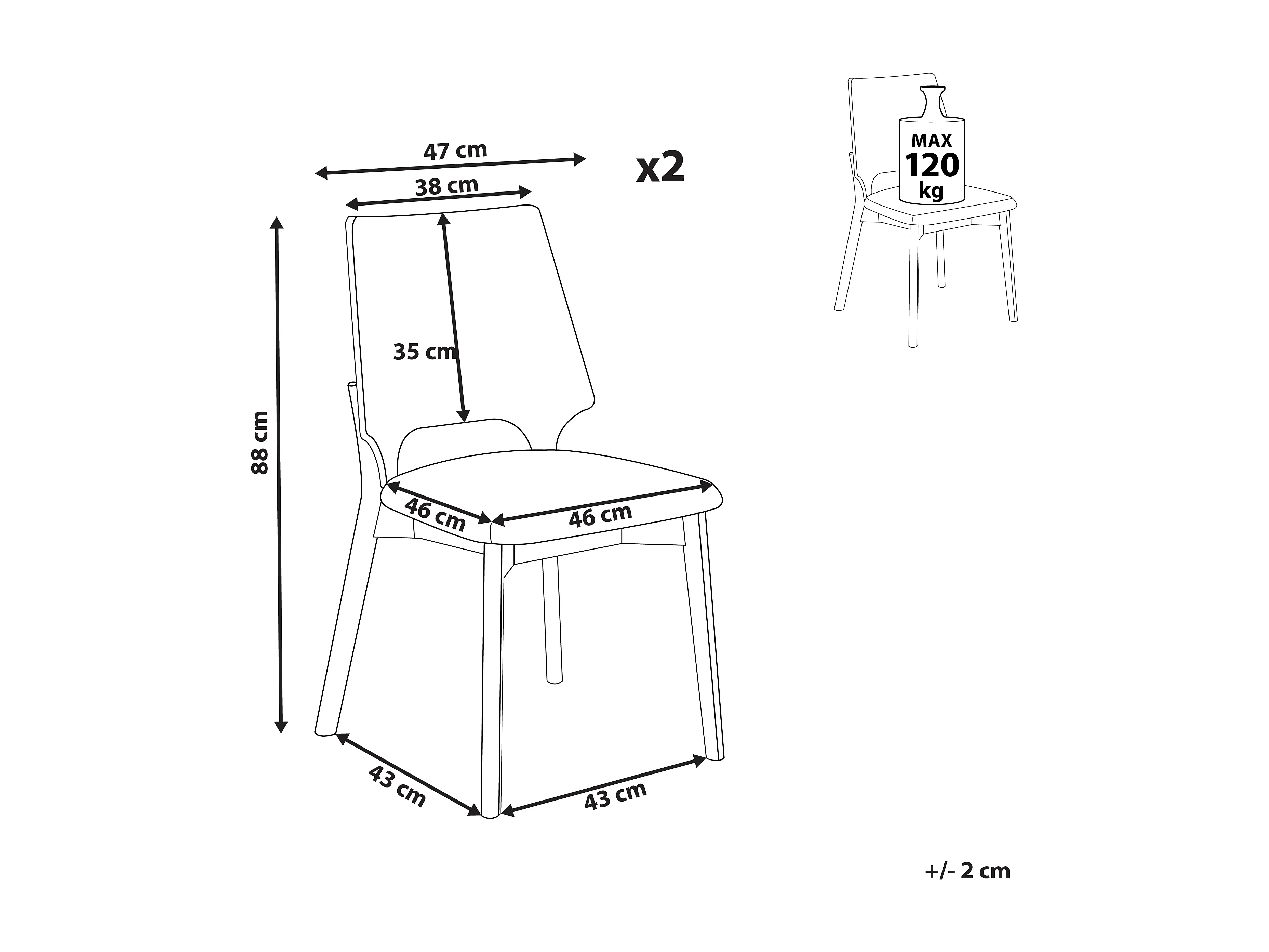 Set van 2 eetkamerstoelen ABEE Grijs
