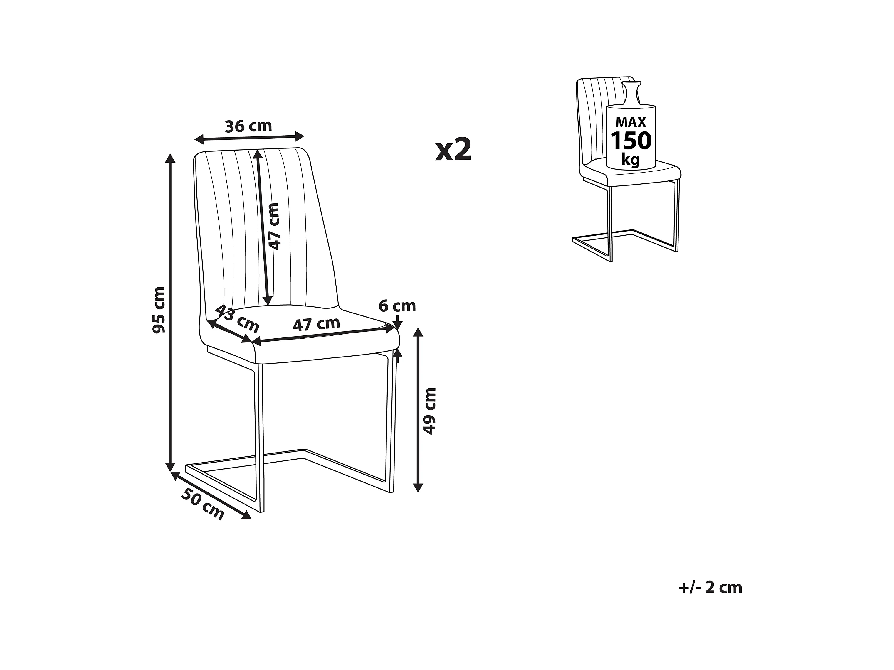 Set van 2 eetkamerstoelen ROCKFORD Fluweel Grijs
