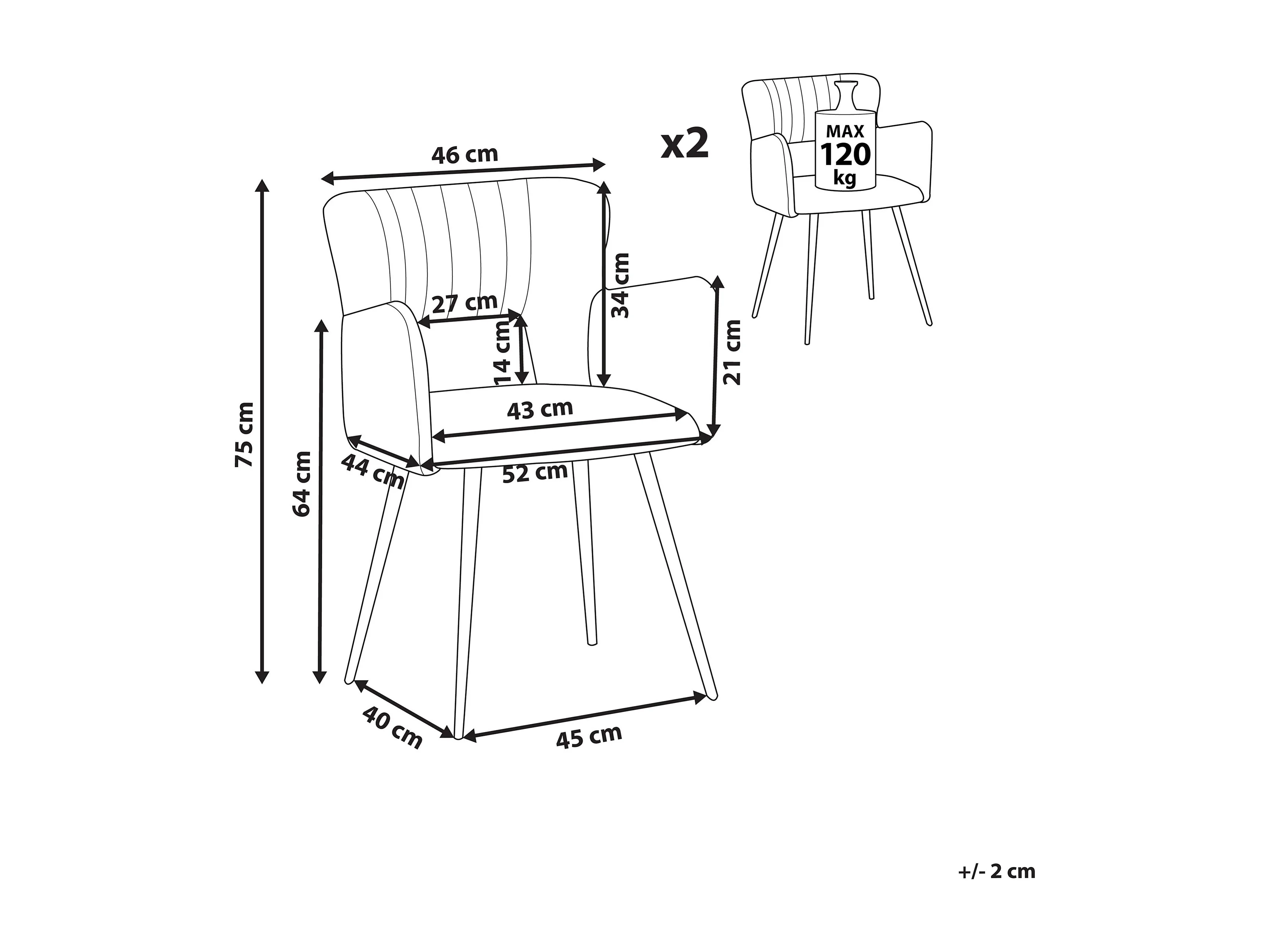Set van 2 eetkamerstoelen SANILAC Fluweel Wit
