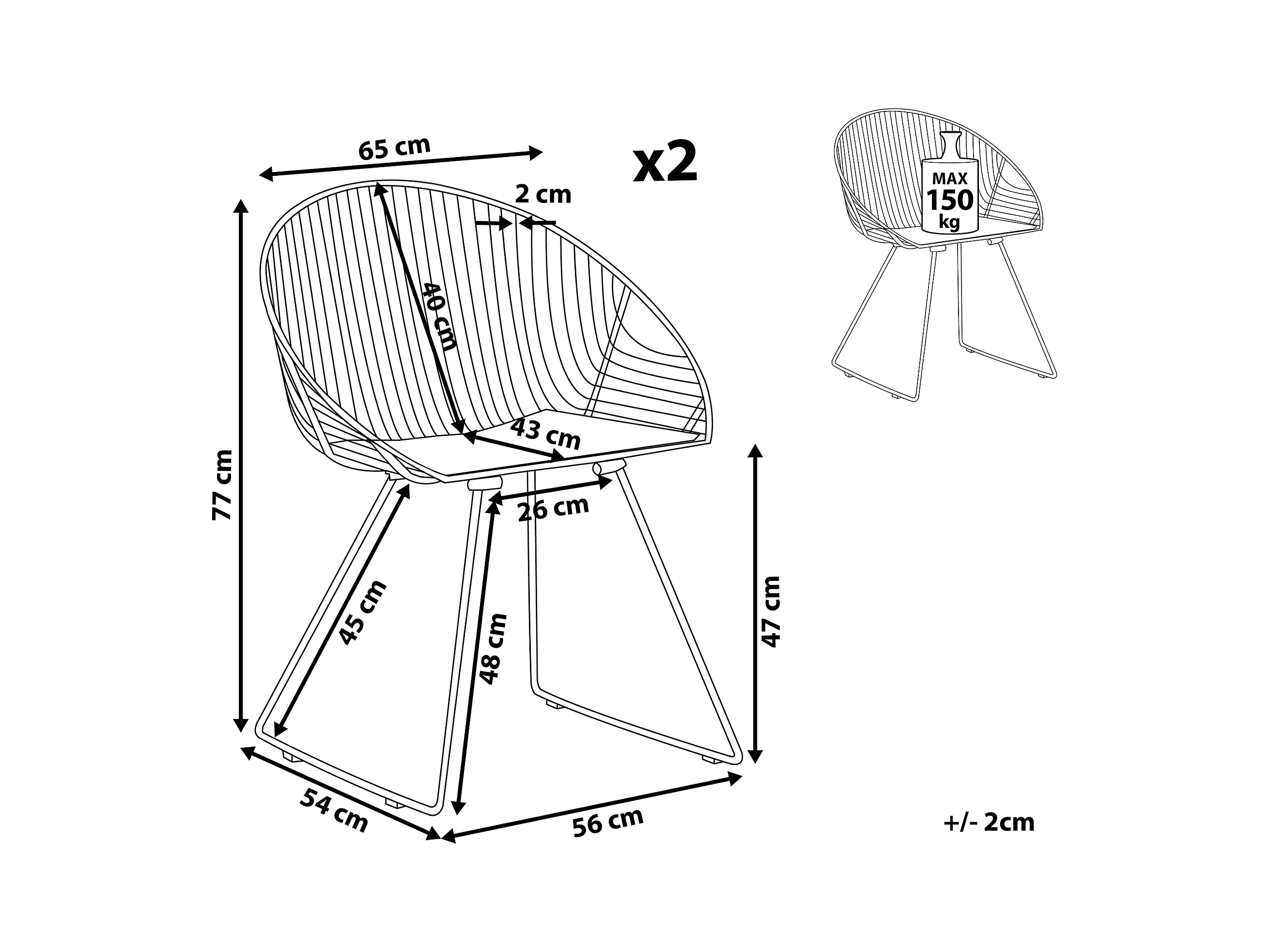 Set van 2 eetkamerstoelen HOBACK Metaal Goud