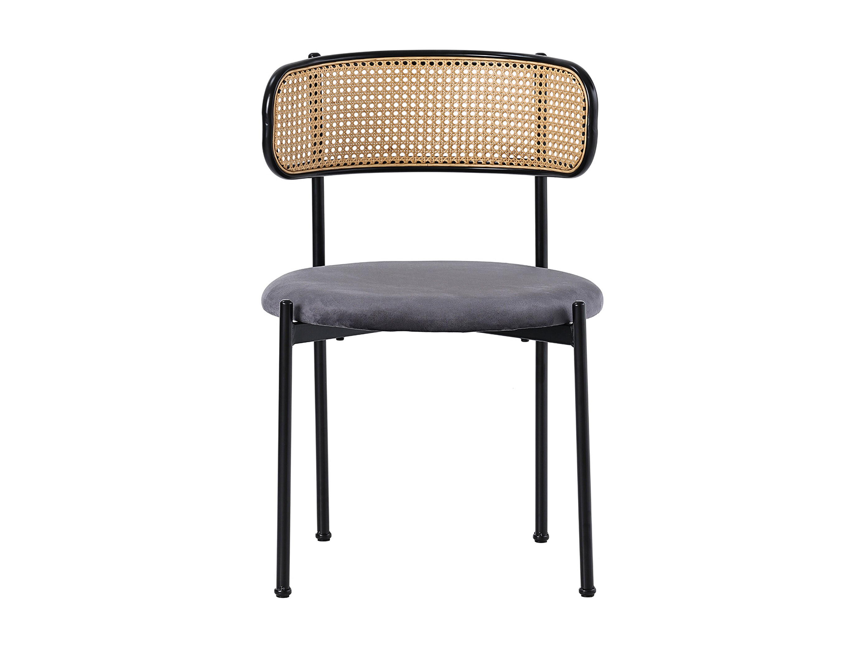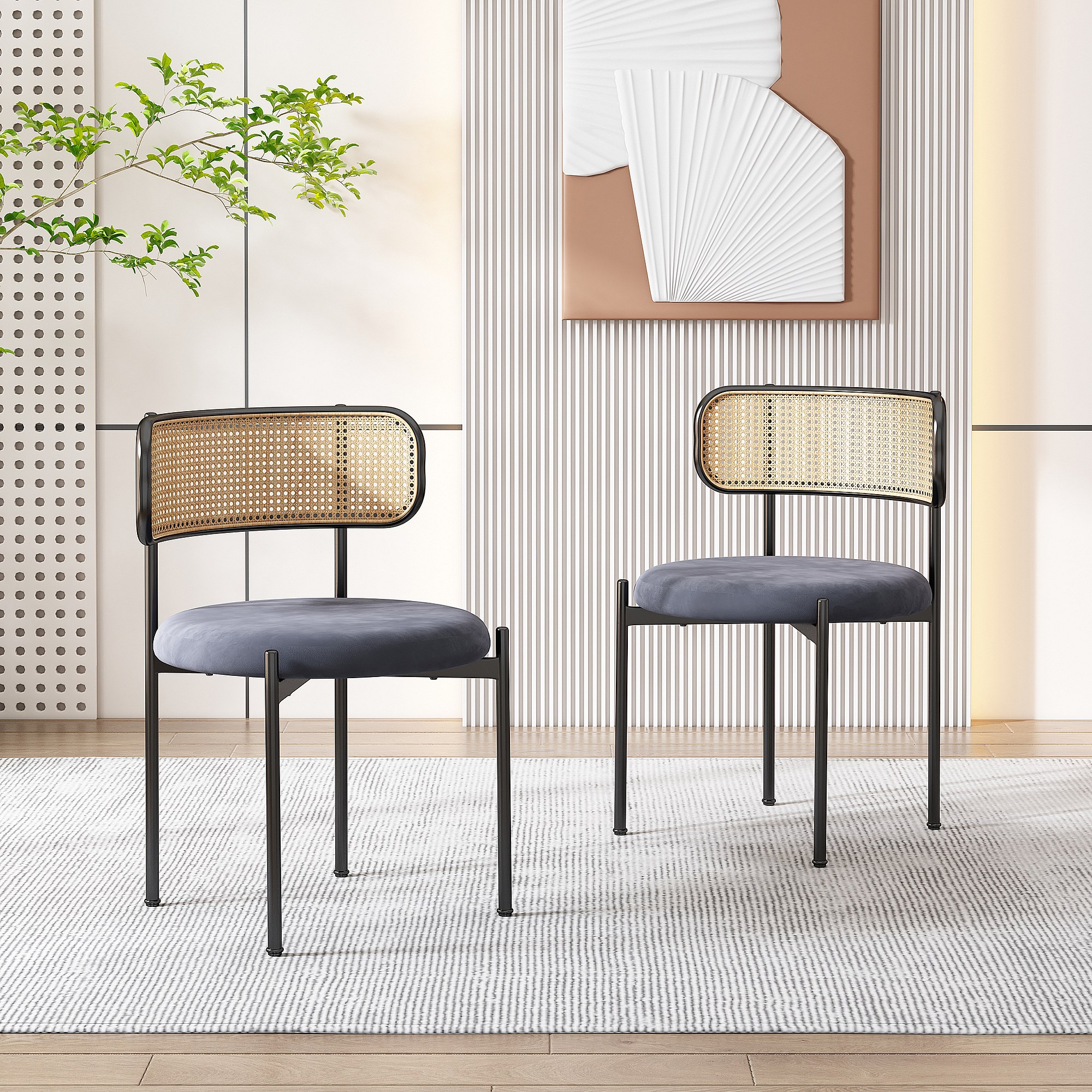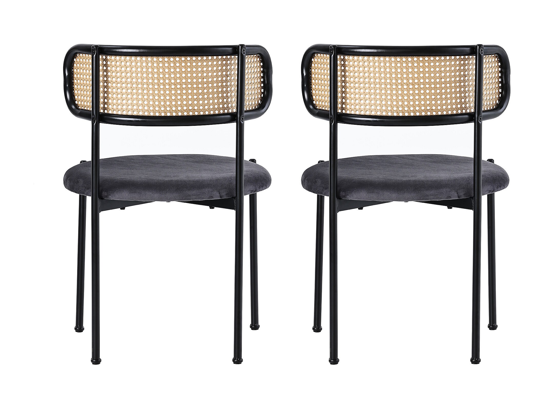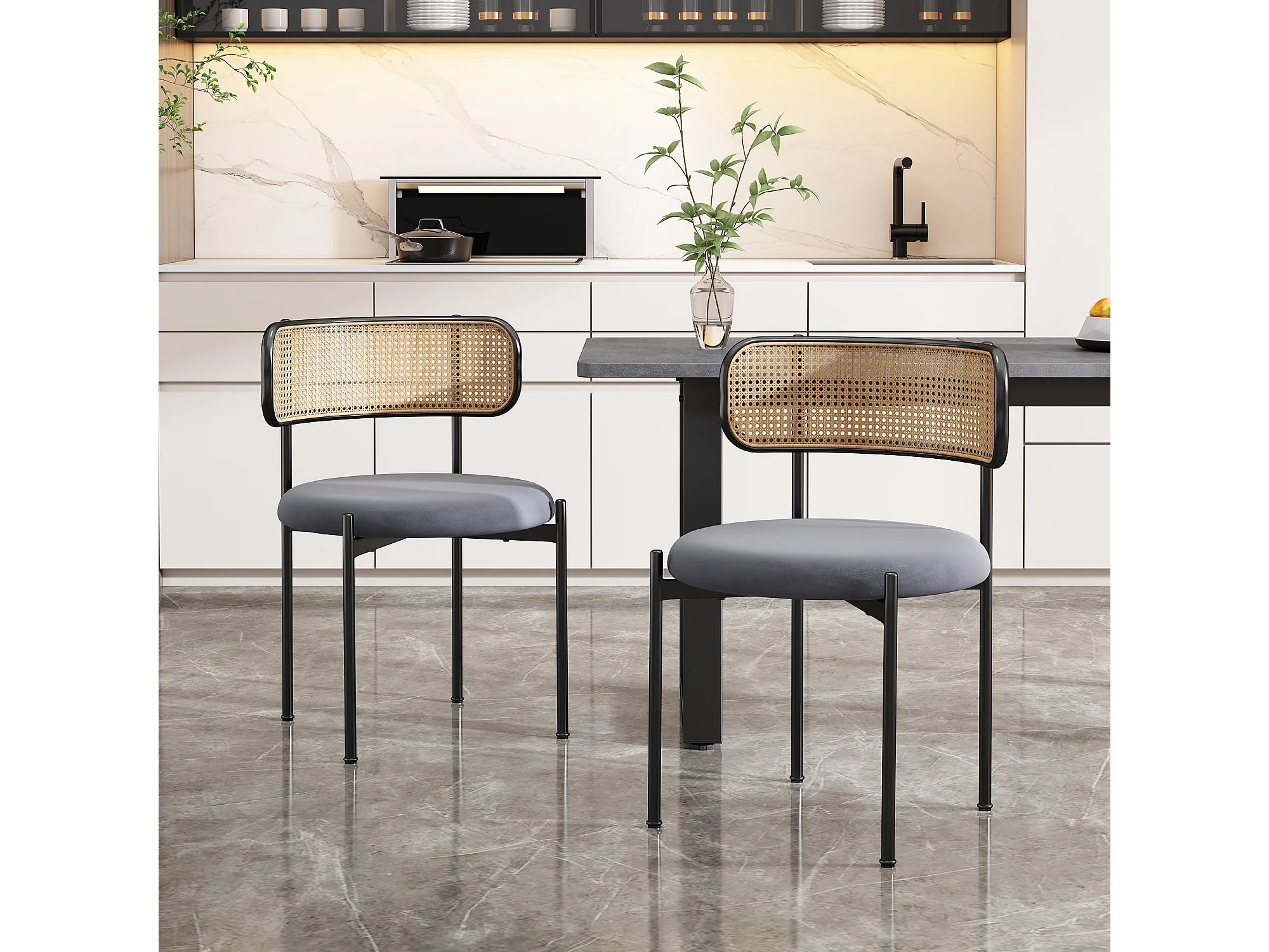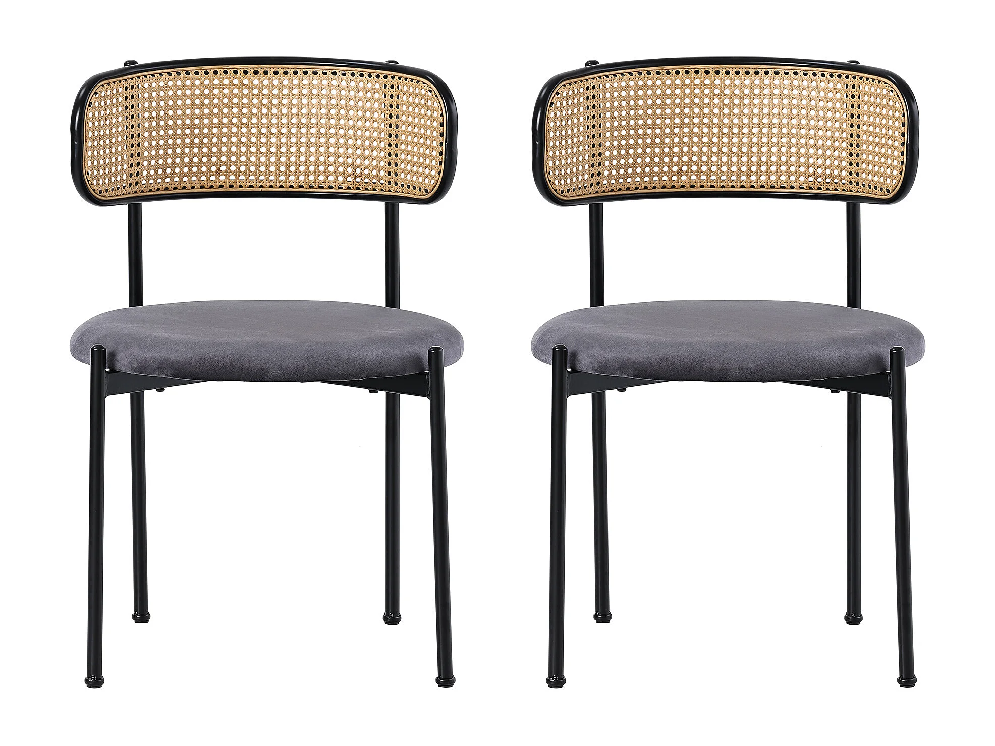 Eetkamerstoel van fluweel, set van 2, modern design, zitting van fluweel, metaal en rotan, grijs (afmetingen niet gespecificeerd) Productdetails (HTML-formaat):