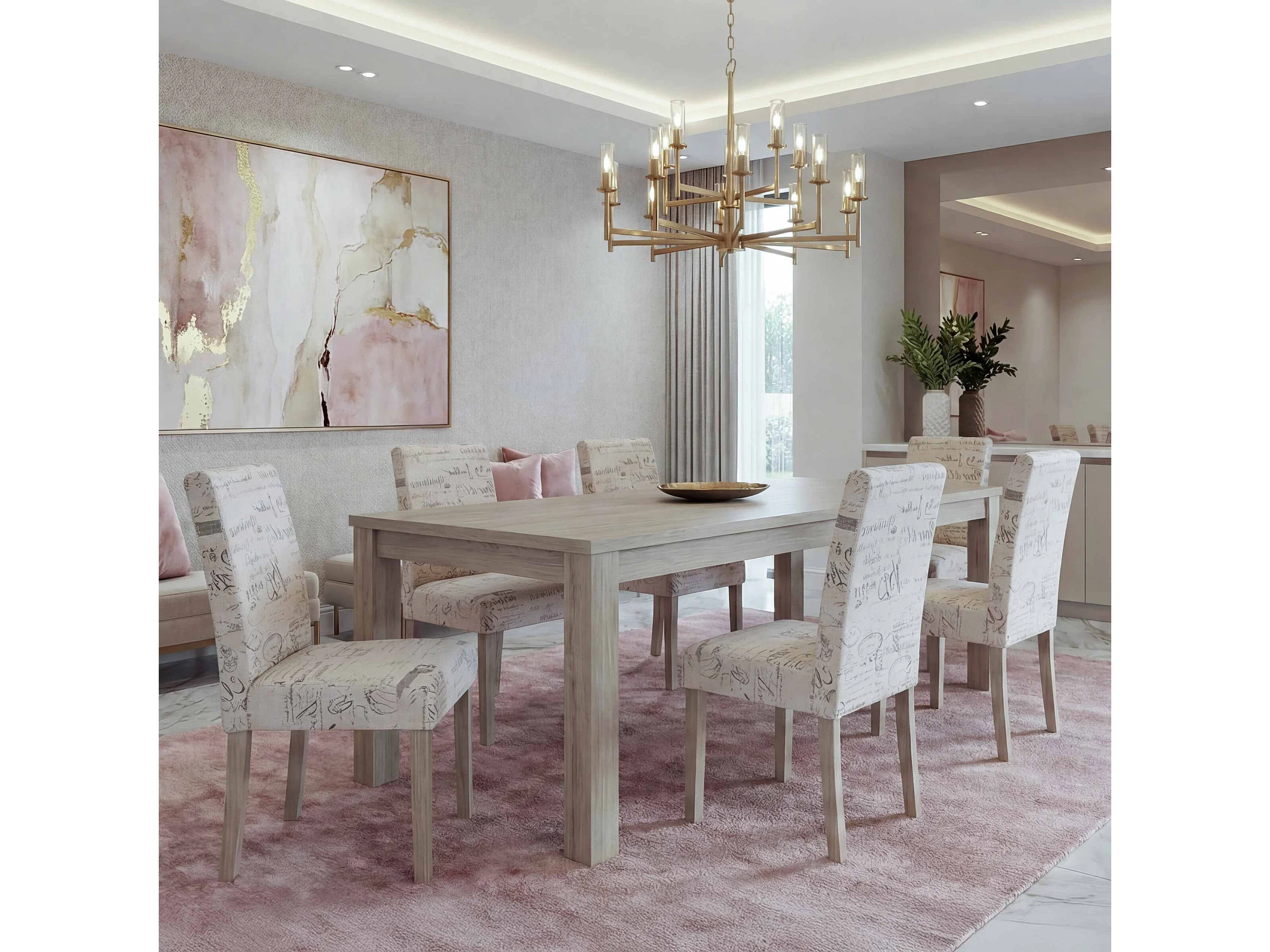 Eetkamerstoel Littau Schrift (set van 6), textiel met opschrift, crème, poten structuur - eikenhout