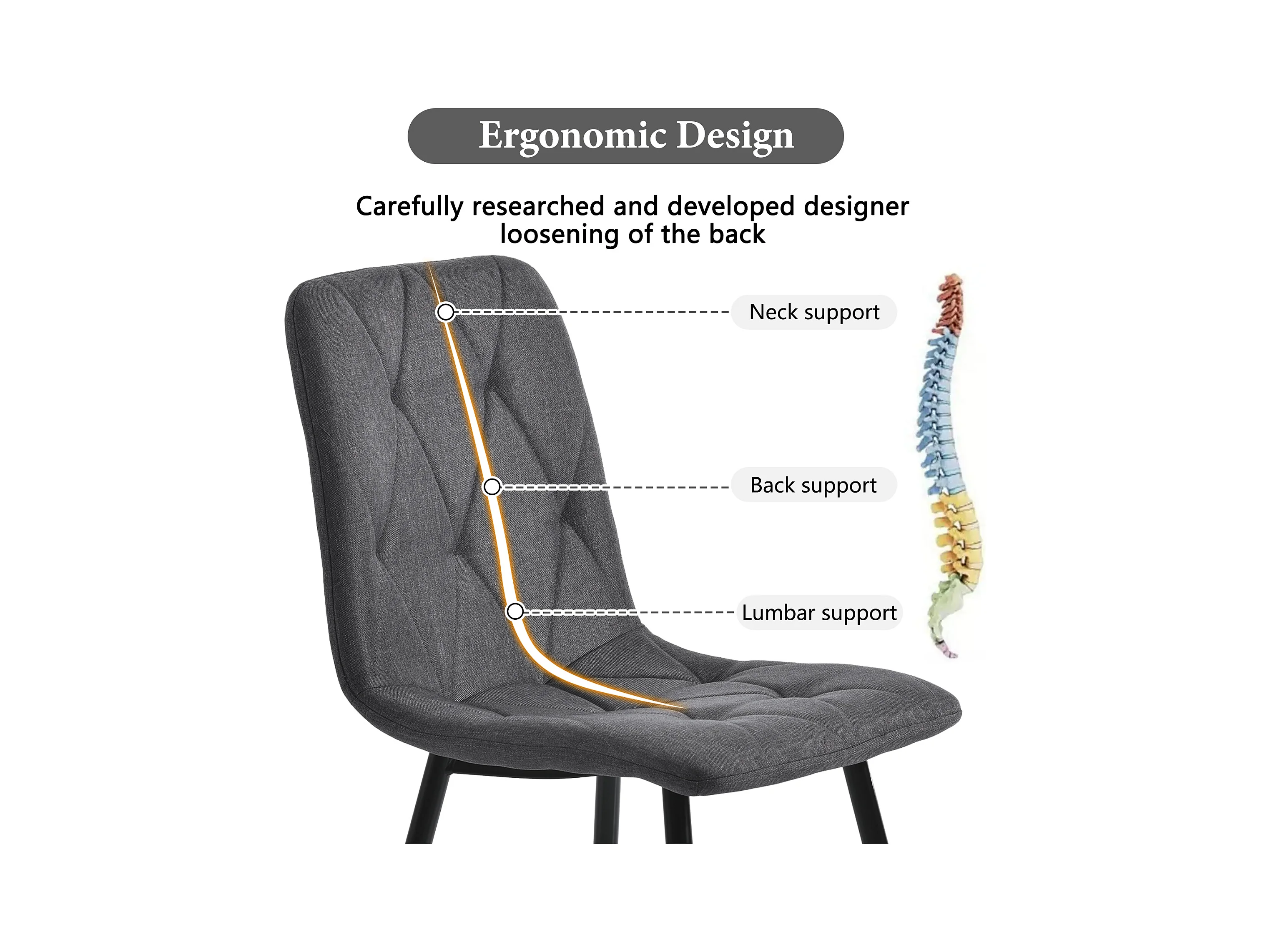 Eetkamerstoelset van 4, donkergrijs, gestoffeerd stoelontwerp met rugleuning, linnen, metalen frame