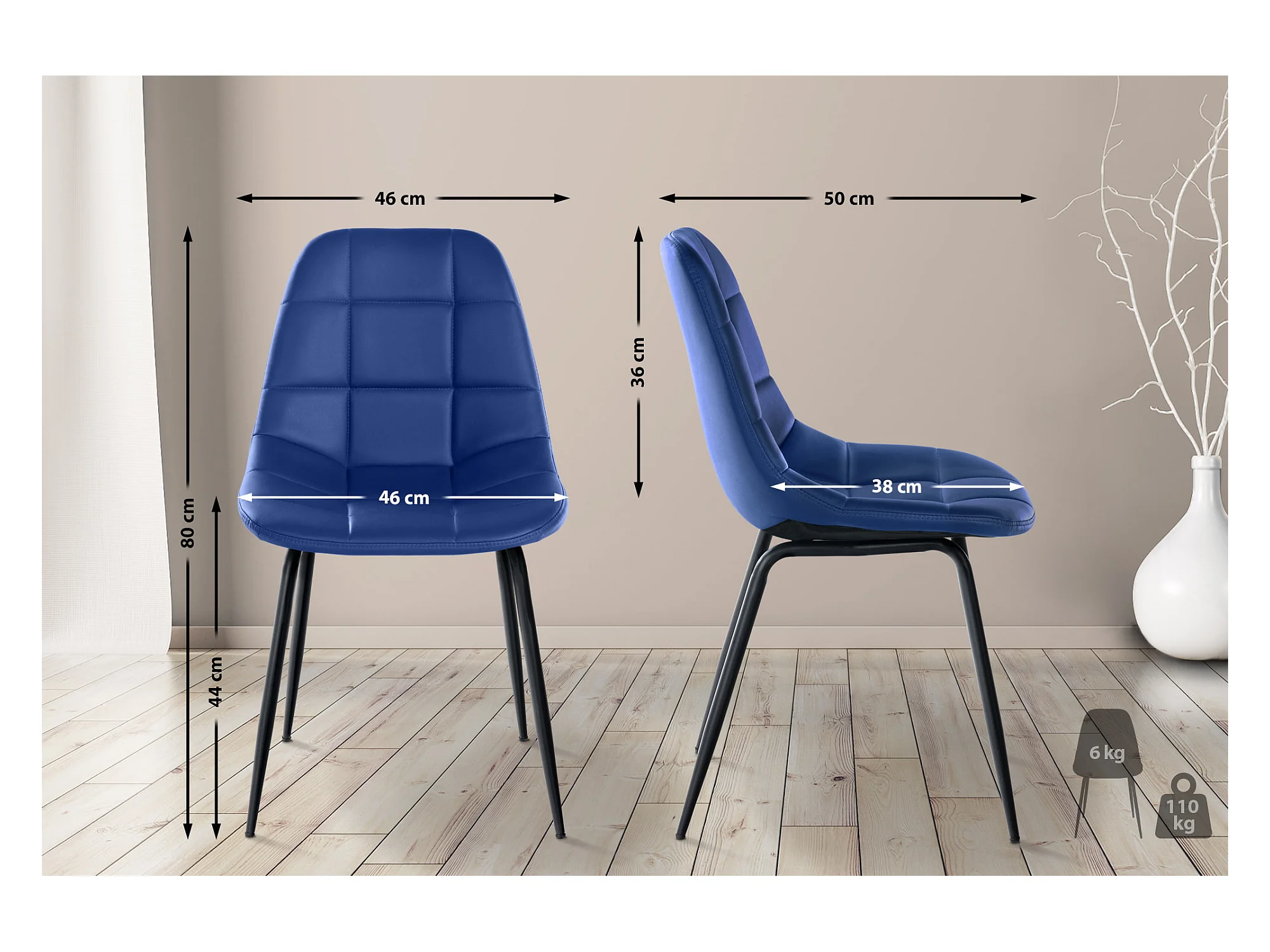 Eetkamerstoelen - Kunstleer & Metaal mat zwart - blauw - Tom