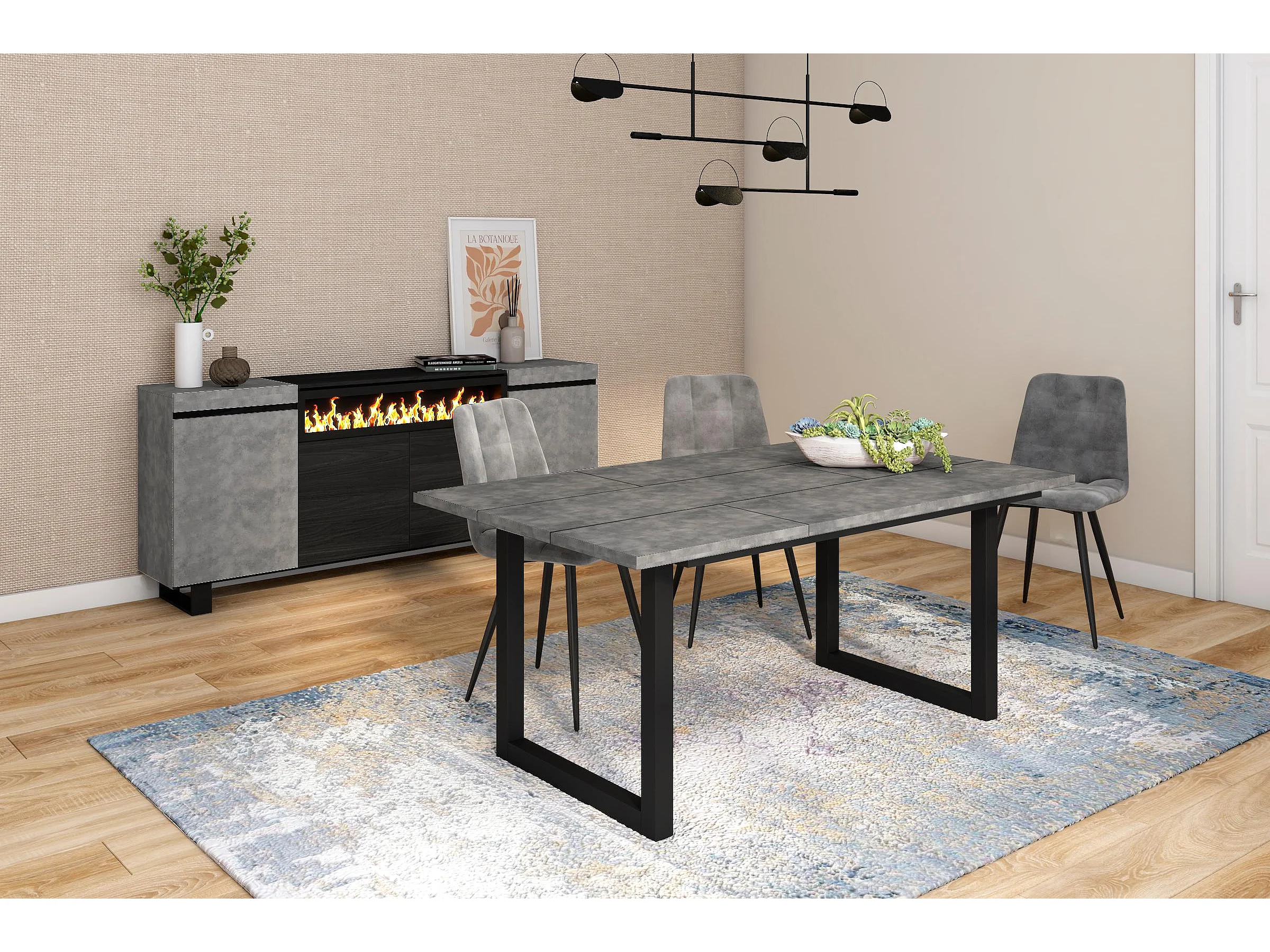 Eettafel, 170, Voor 8 personen, Massief houten poten, Cement