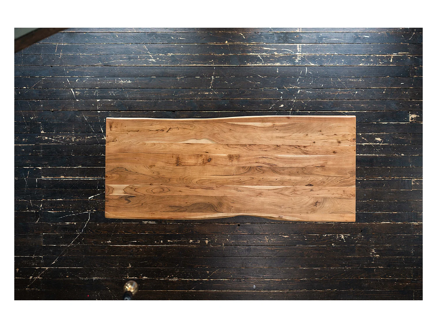 Esstisch aus natürlichem Akazienholz und schwarzen Metallbeinen Braun Giner und Colomer 78x90x180