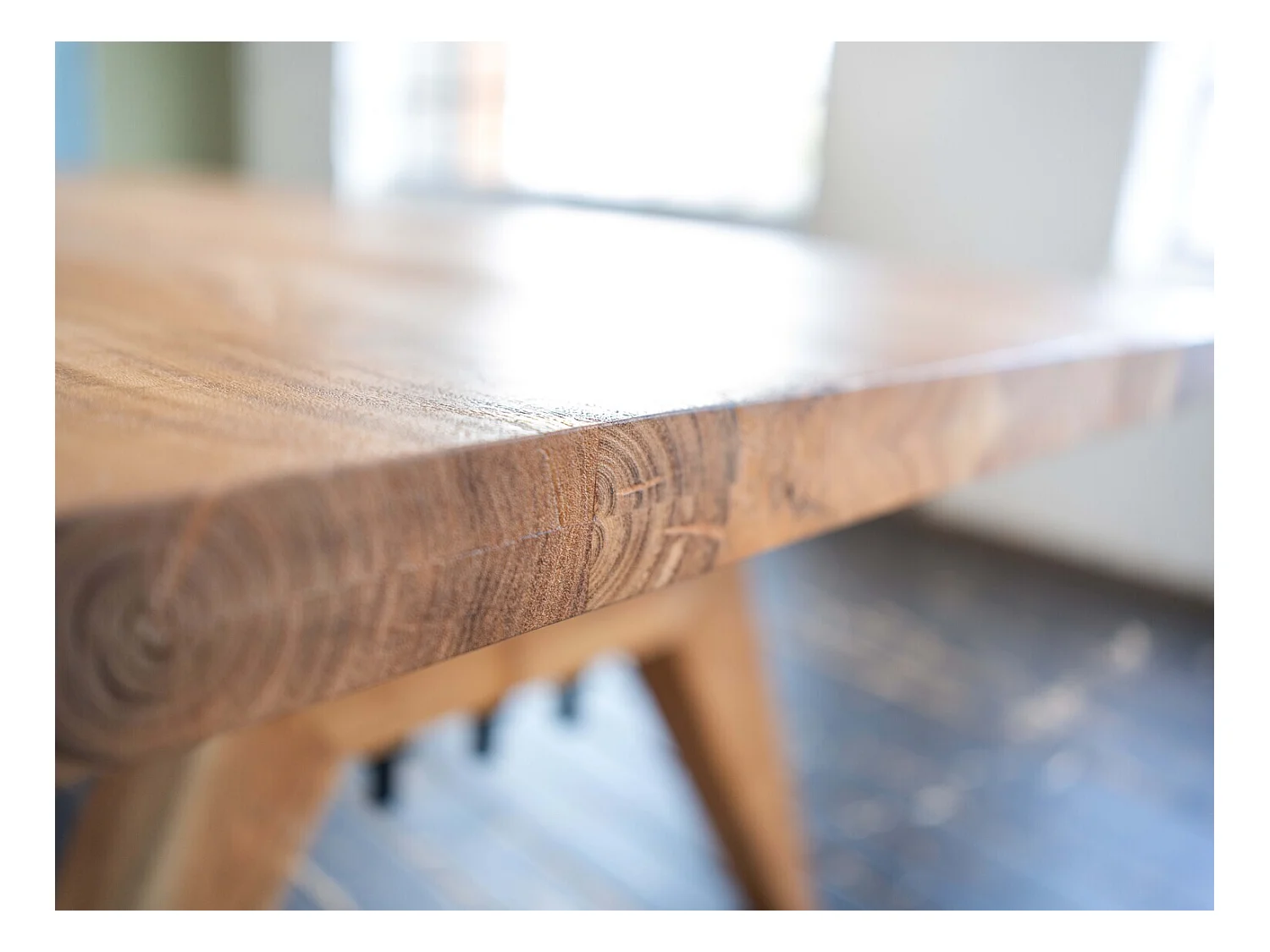 Esstisch aus natürlichem Akazienholz und schwarzen Metallbeinen Braun Giner und Colomer 78x100x200