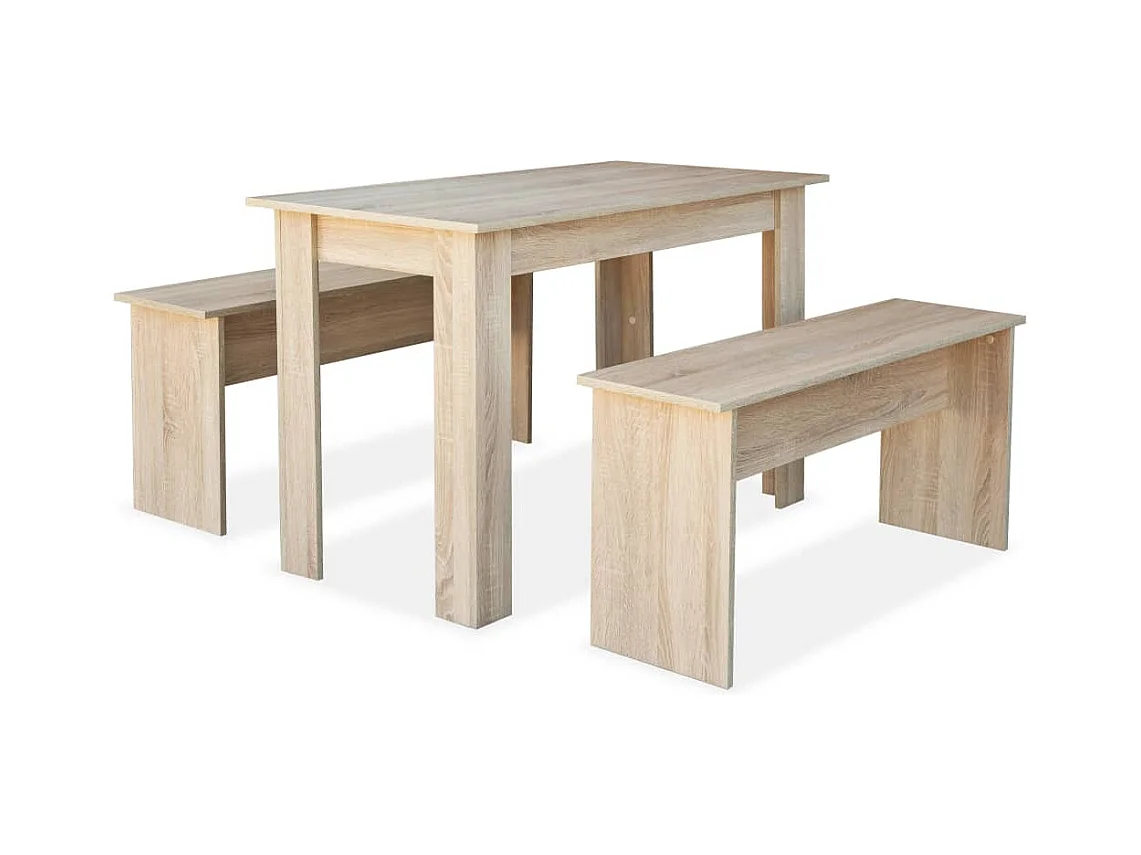 Eettafel en banken 3 st bewerkt hout eikenkleurig