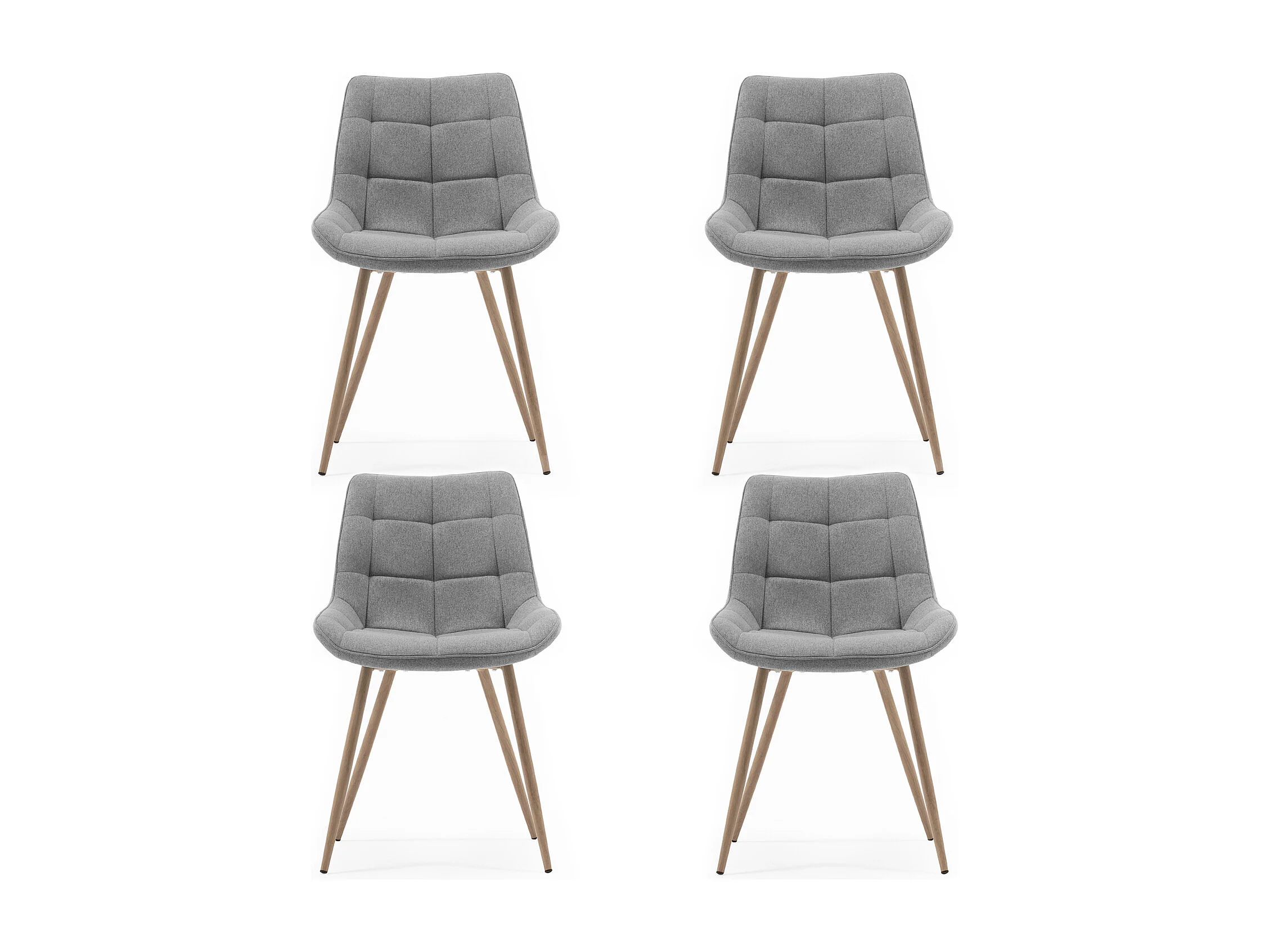 Tafelset + 4 linnen stoelen - goud metalen poten - grijs en wit