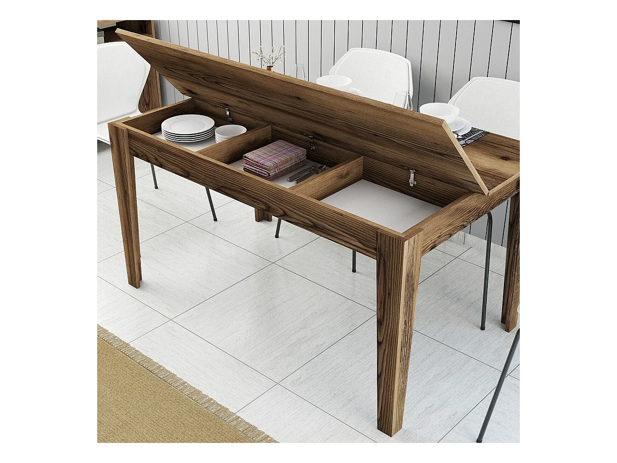Eettafel met opbergruimte decor notenhout L145 cm - MILAN
