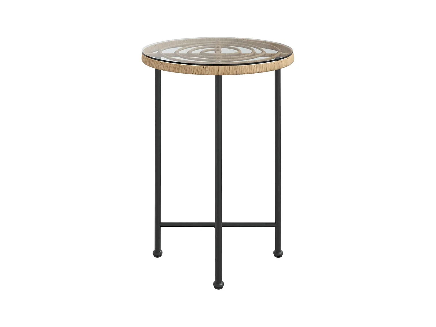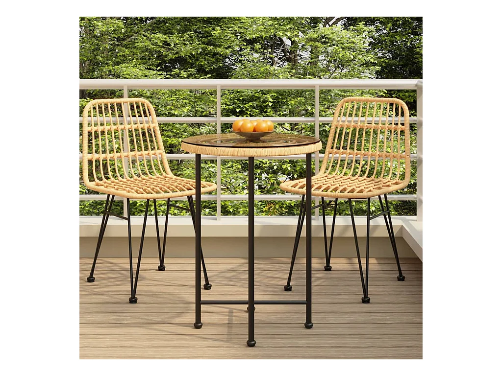Tuintafel met bruin glazen blad 55x55x37 cm gevlochten hars