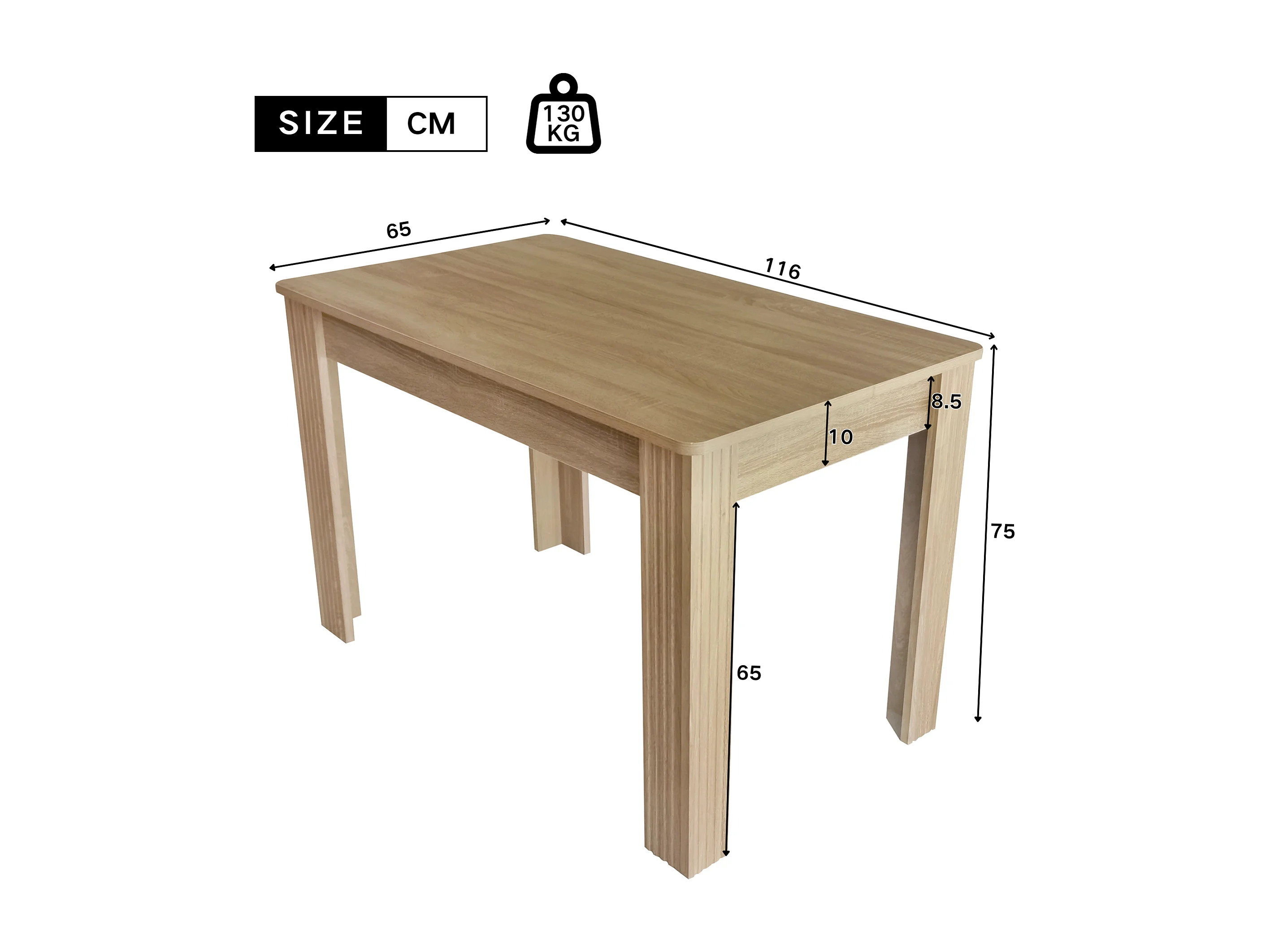 Eettafel voor 6 personen met 4 dikke poten, lichte natuurlijke houtnerf