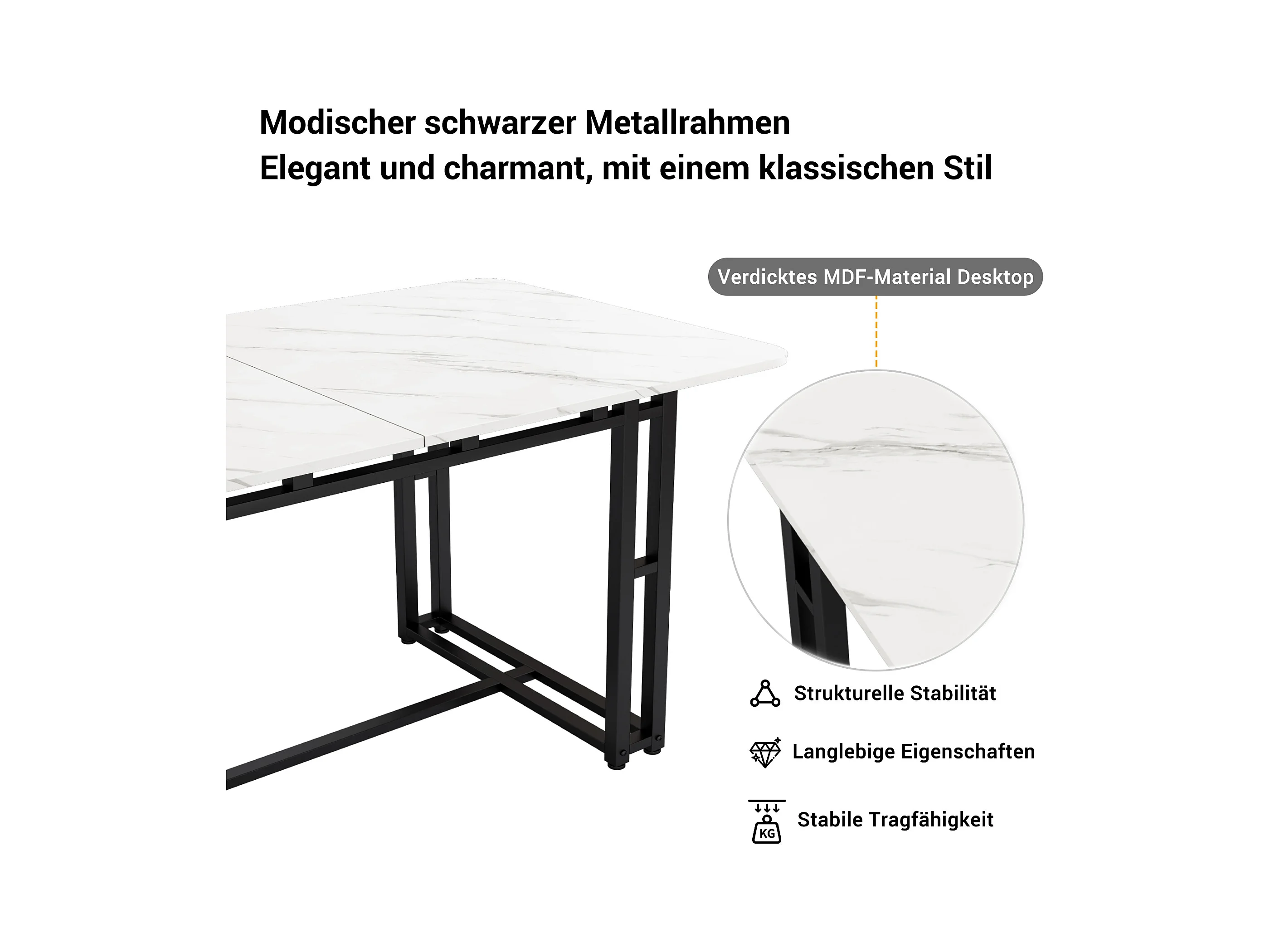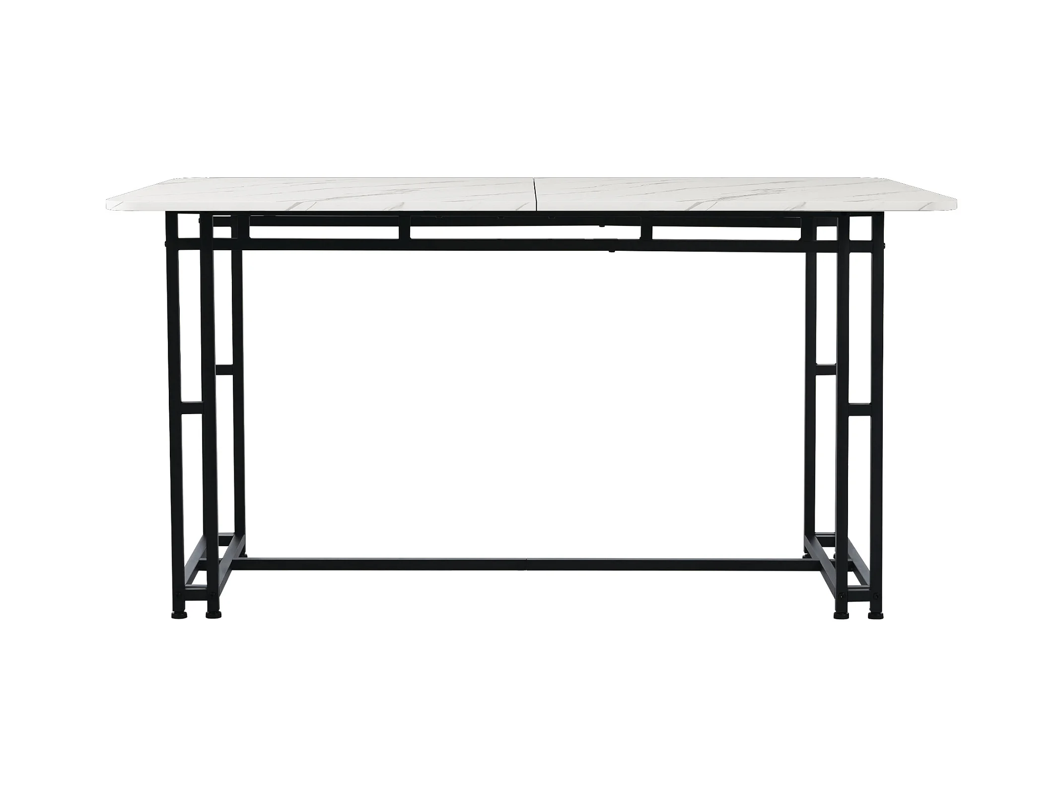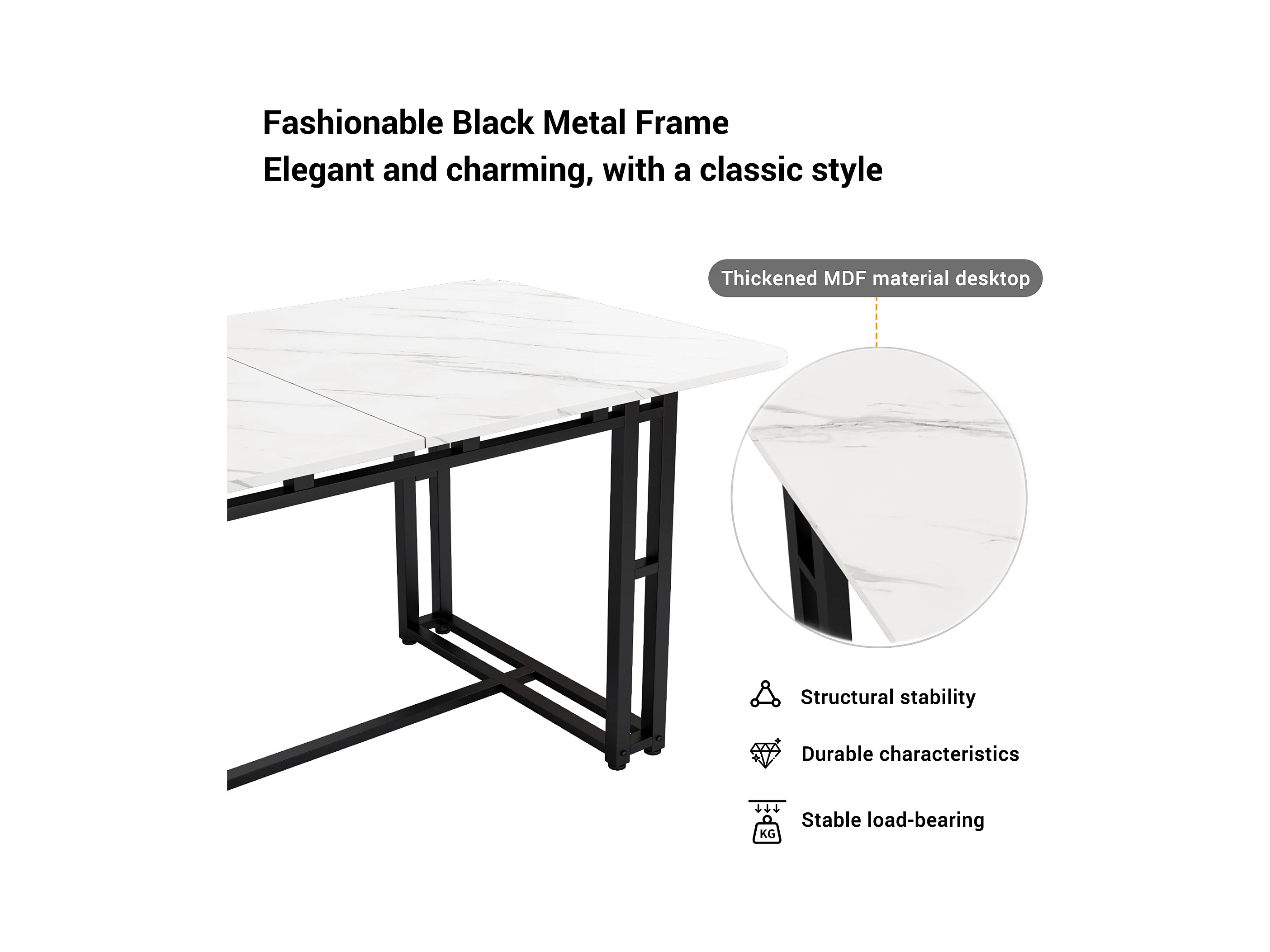 Eettafel voor 6 tot 8 couverts in marmerpatroon - MDF + zwarte metalen poten - wit