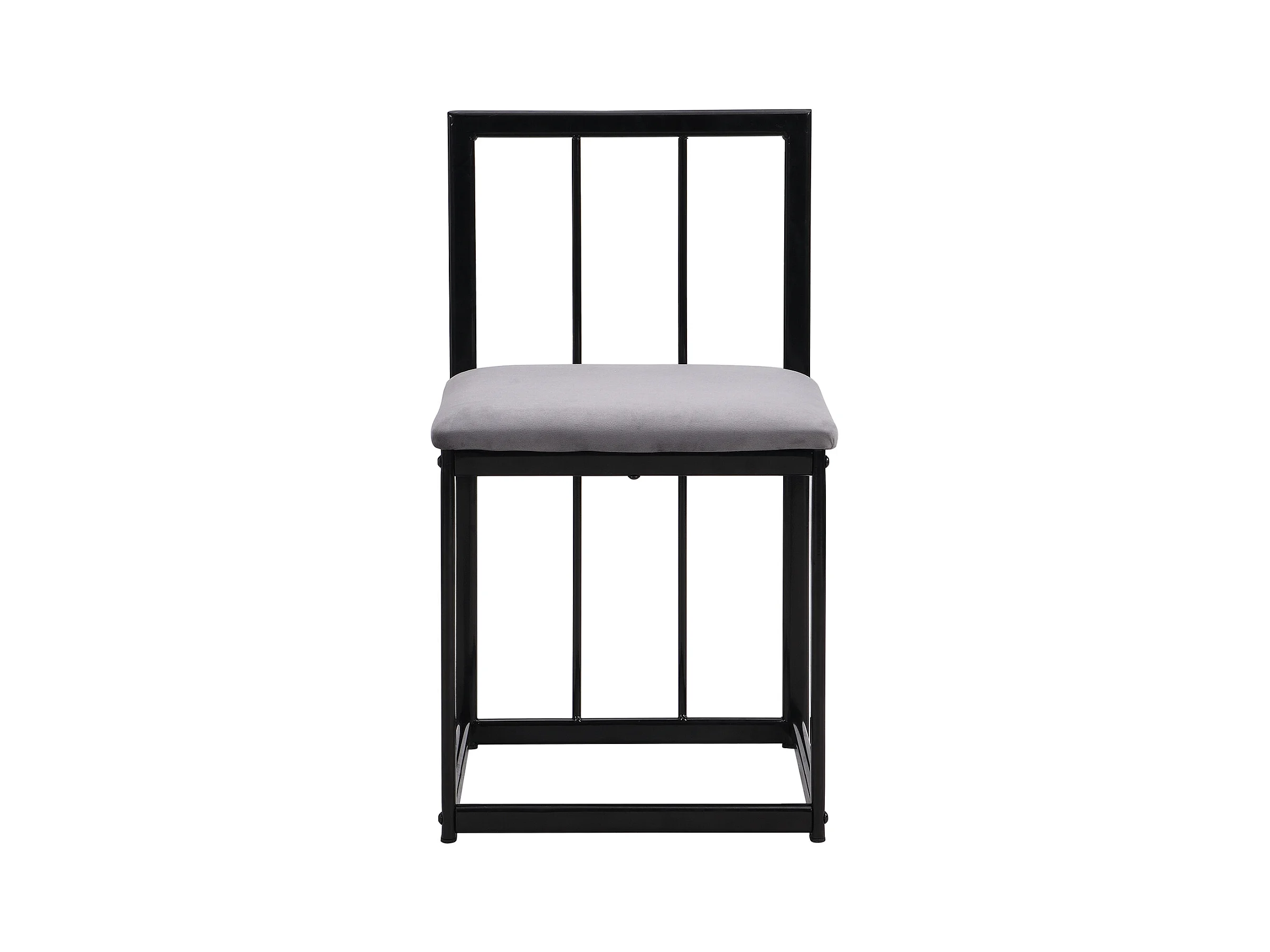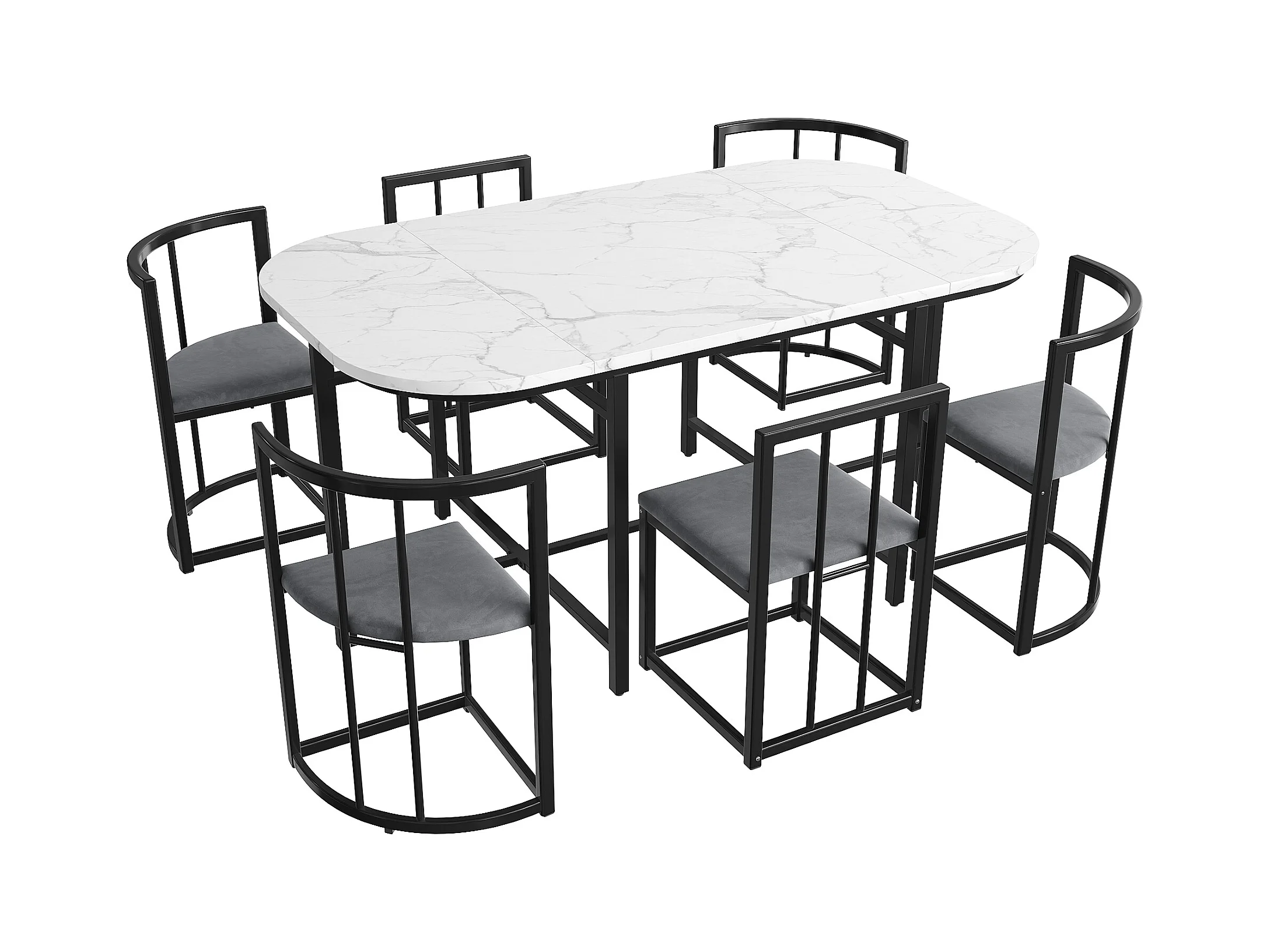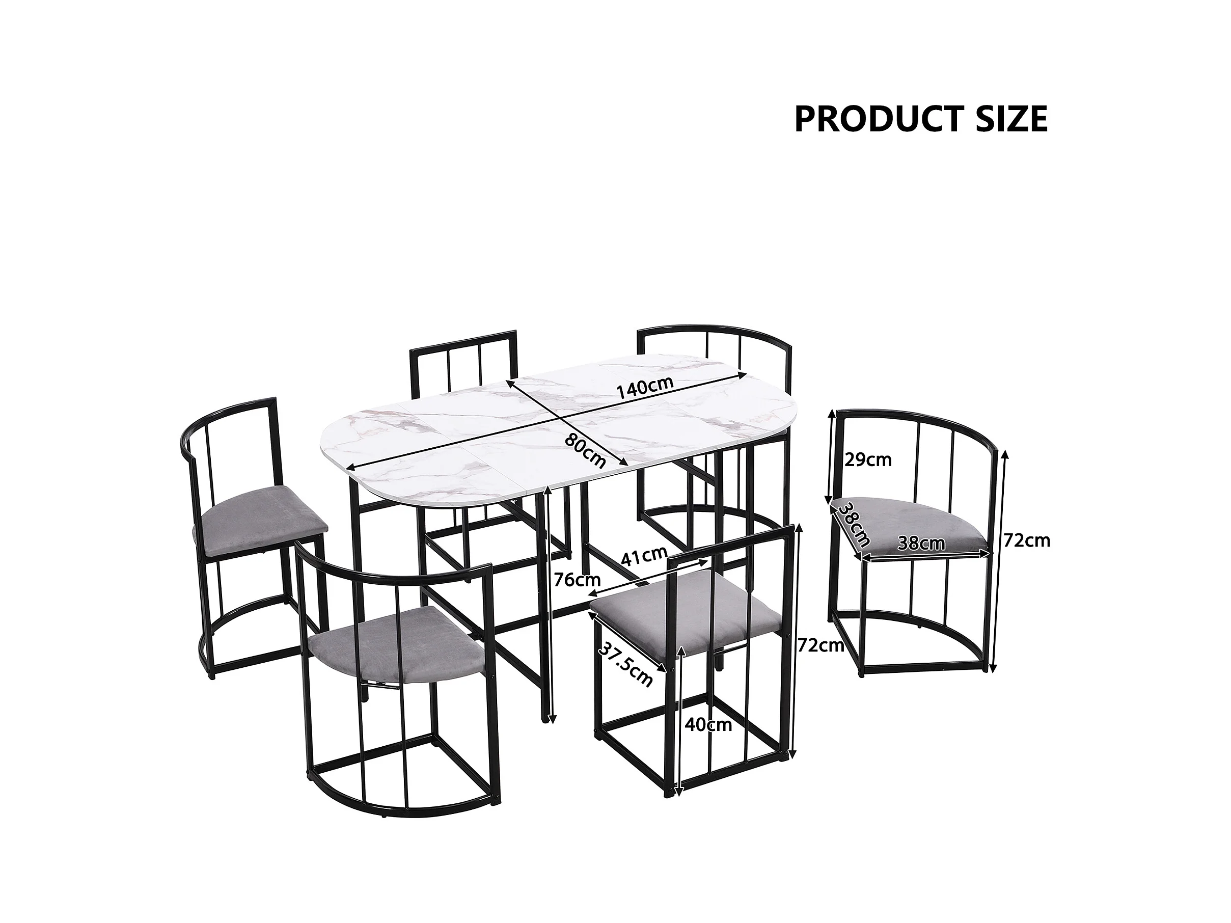 Eettafelset (140x80x76 cm) + 6 stoelen met grijze fluwelen rugleuning - zwarte metalen poten