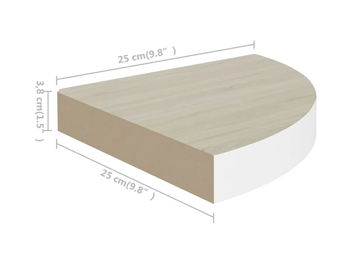 Eikenhouten en witte wandhoekplank 25x25x3,8 cm MDF
