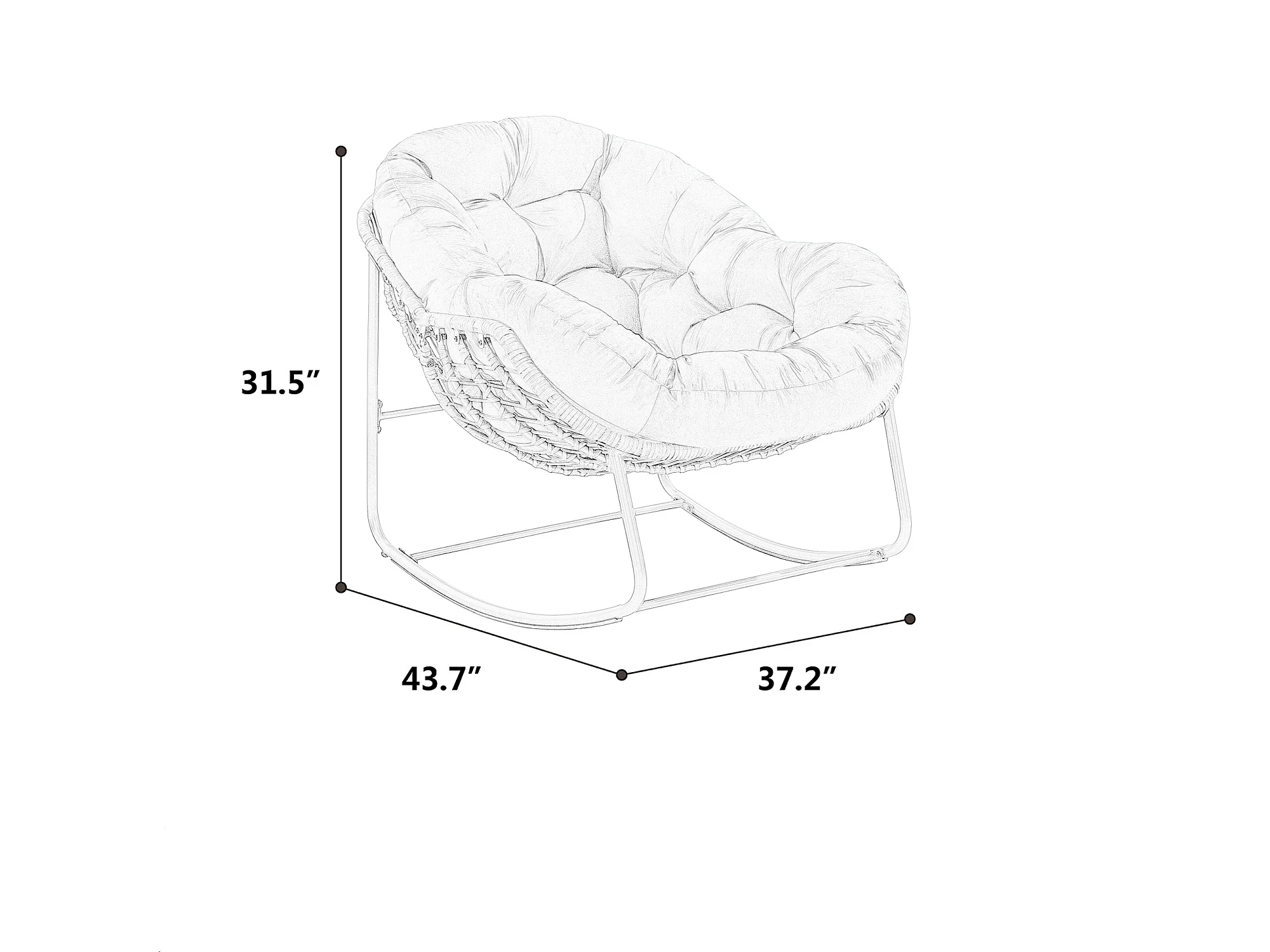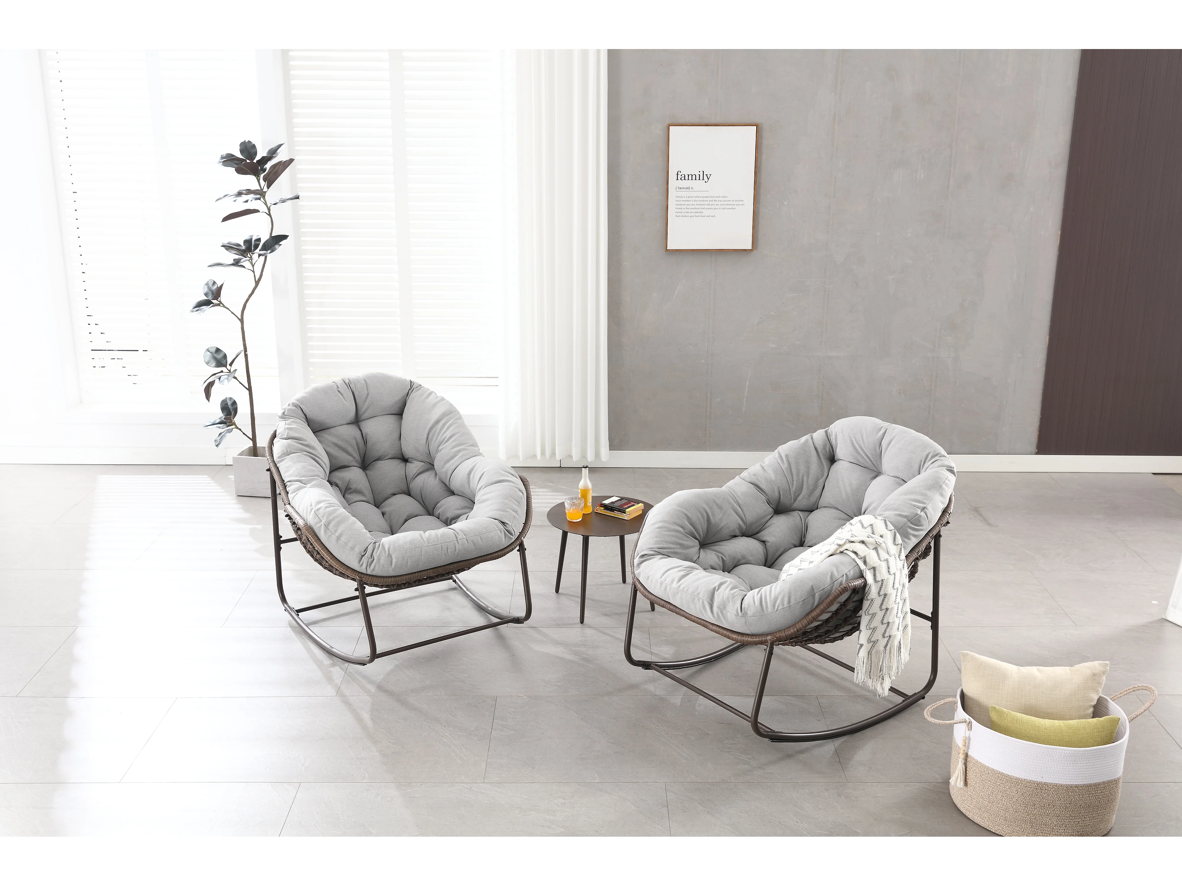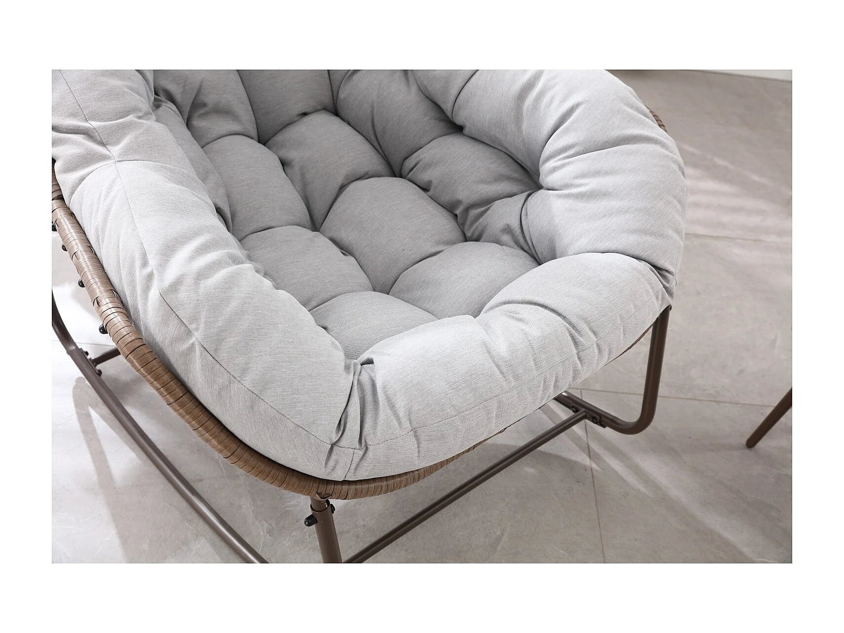 Eivormige rieten schommelstoel met dik kussen - Lichtgrijs