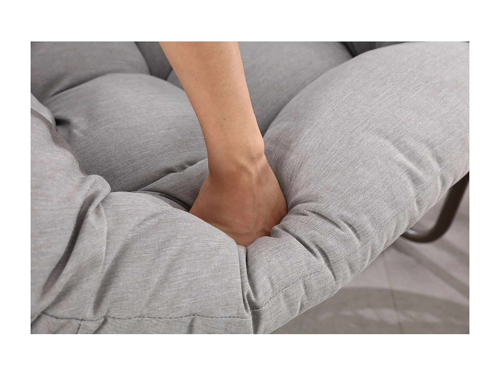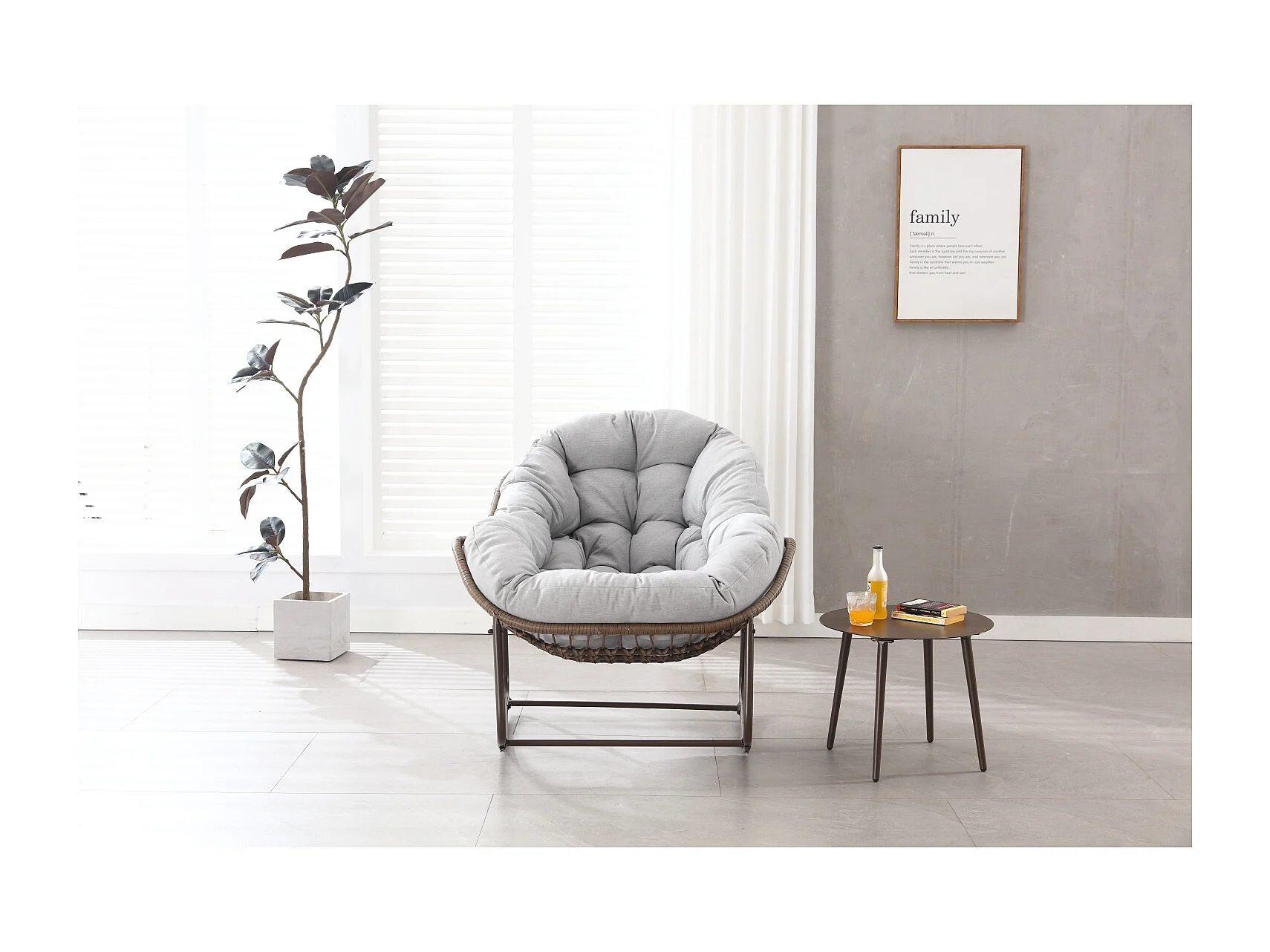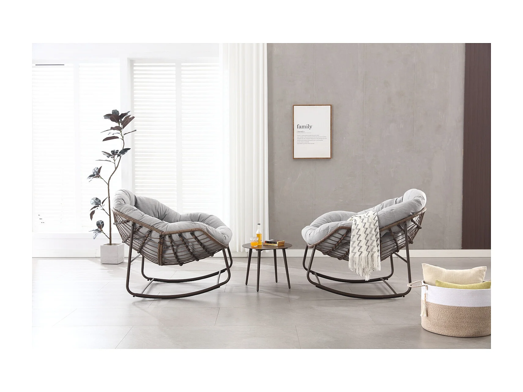 Eivormige rieten schommelstoel met dik kussen - Lichtgrijs