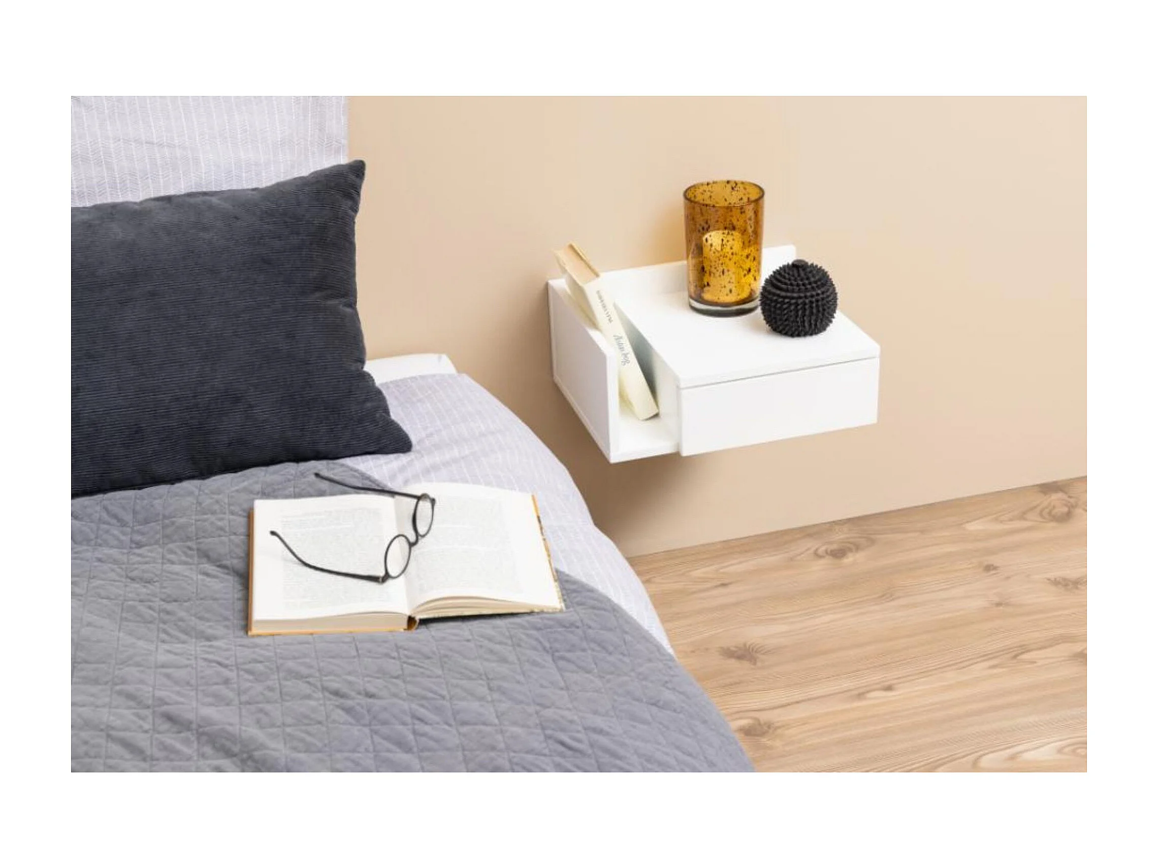 Nachtkastje 1 lade - GENIUS - Blanc et Gris - 36,8 x 33 x 43,8 cm - DEMEYERE