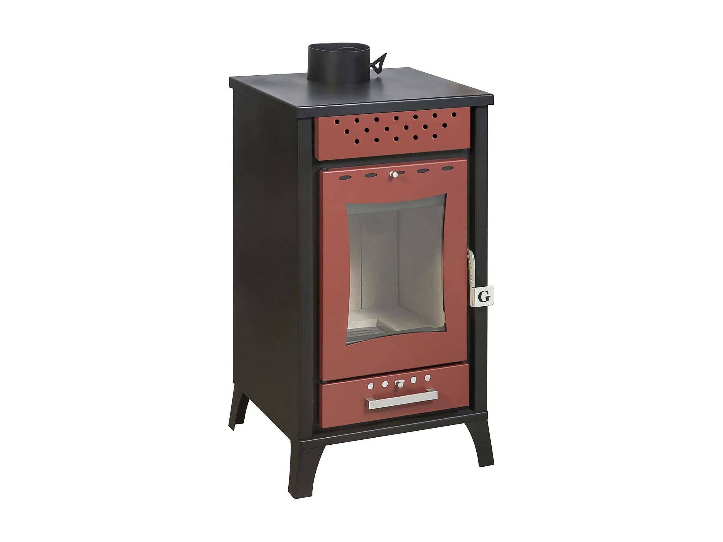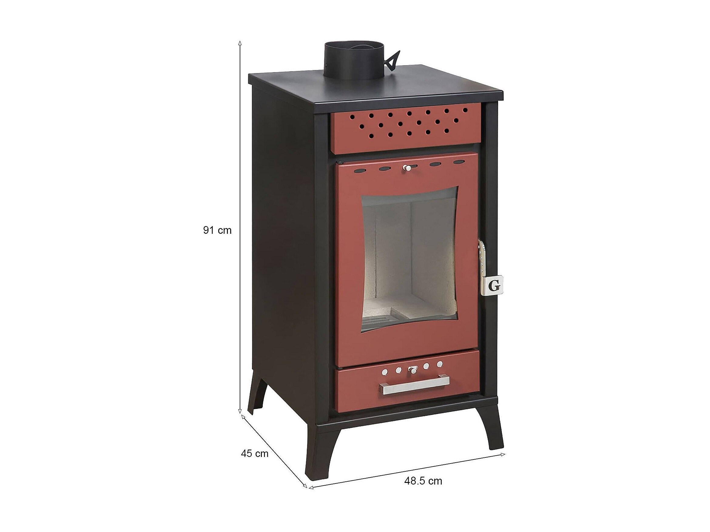 Eldfell houtkachel, Houthaard, Houten haard, Rustieke kachel, Made in Italy, 49x46 h91 cm, Rood