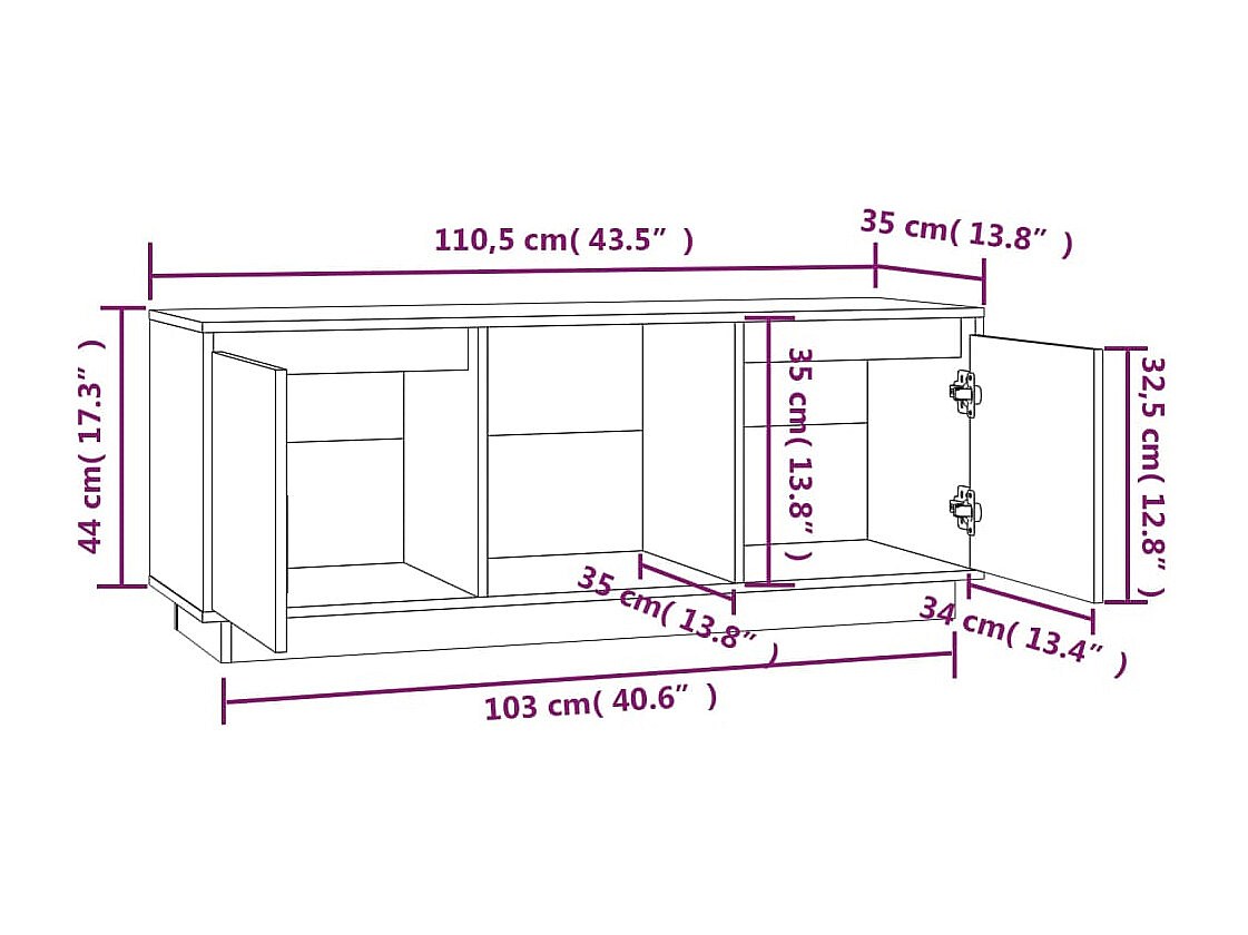 Eldir Tv-meubel 110,5x35x44 cm massief grenenhout honingbruin