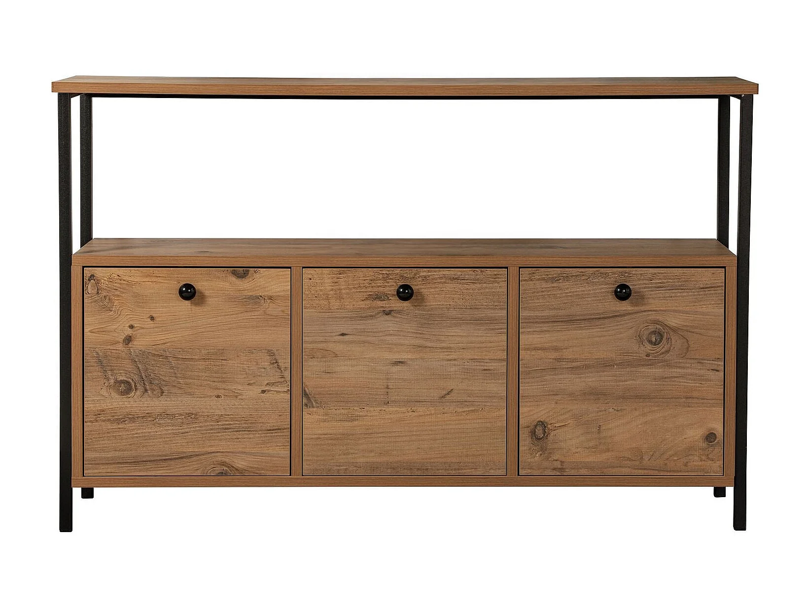 Elegant dressoir, Atlantisch grenen en zwart, 120 x 77 x 29,5 cm | 100% melamine coating, elektrostatische poedercoating, duurzaam metalen profiel | M