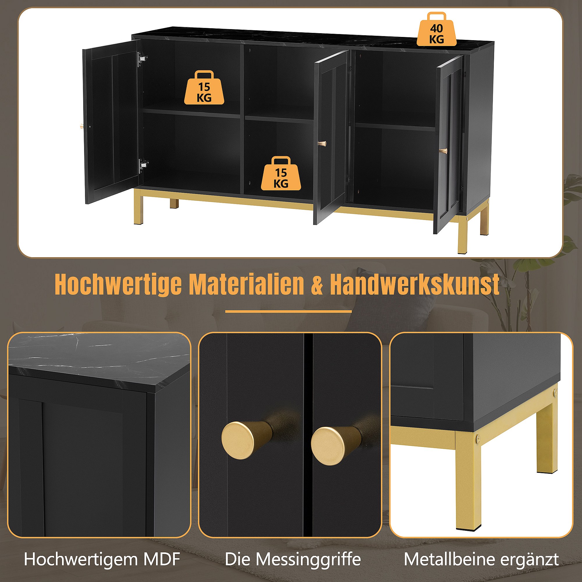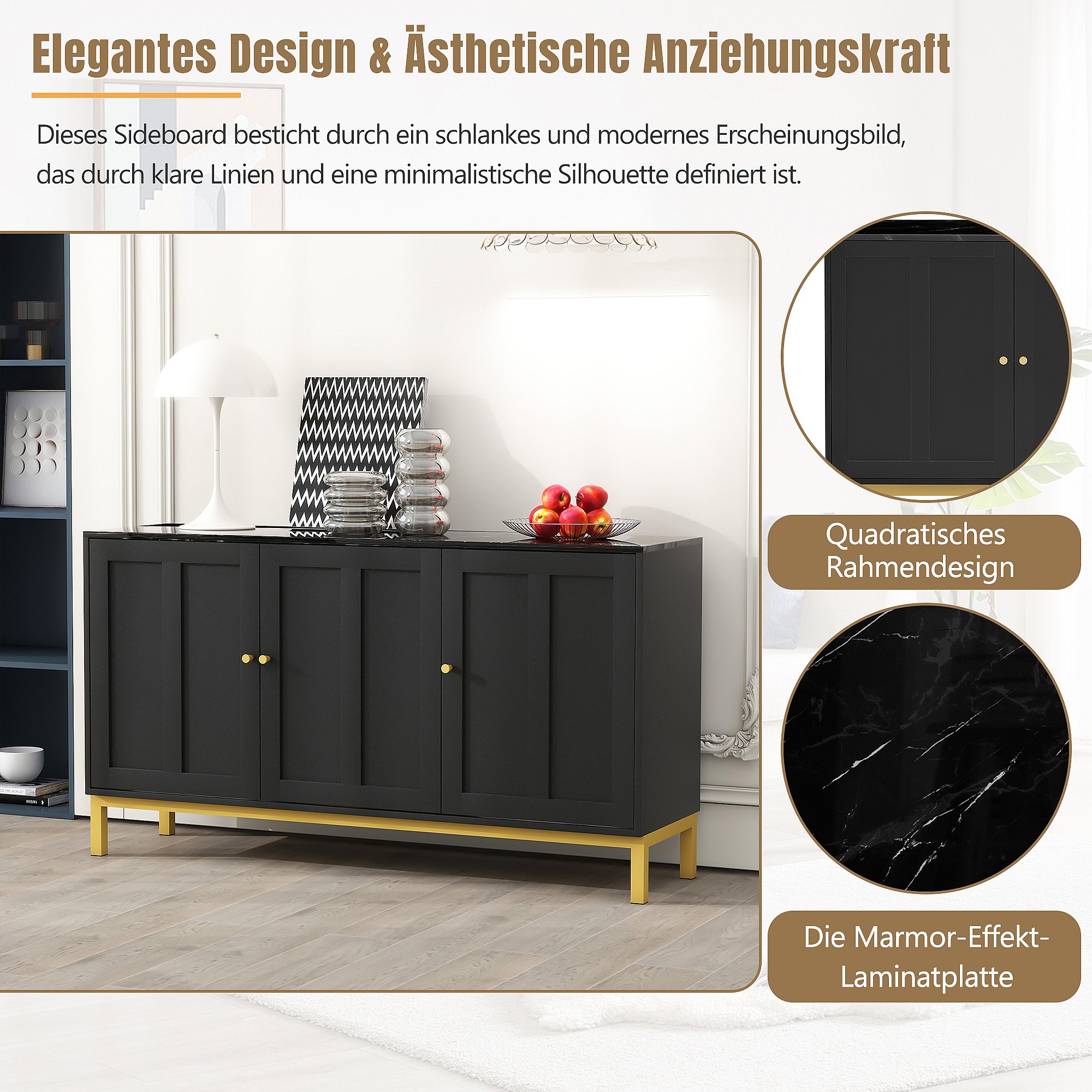 Elegante 3-deurs dressoir met marmeren blad - Stijlvolle opbergkast voor keuken, woonkamer en eetkamer - Zwart