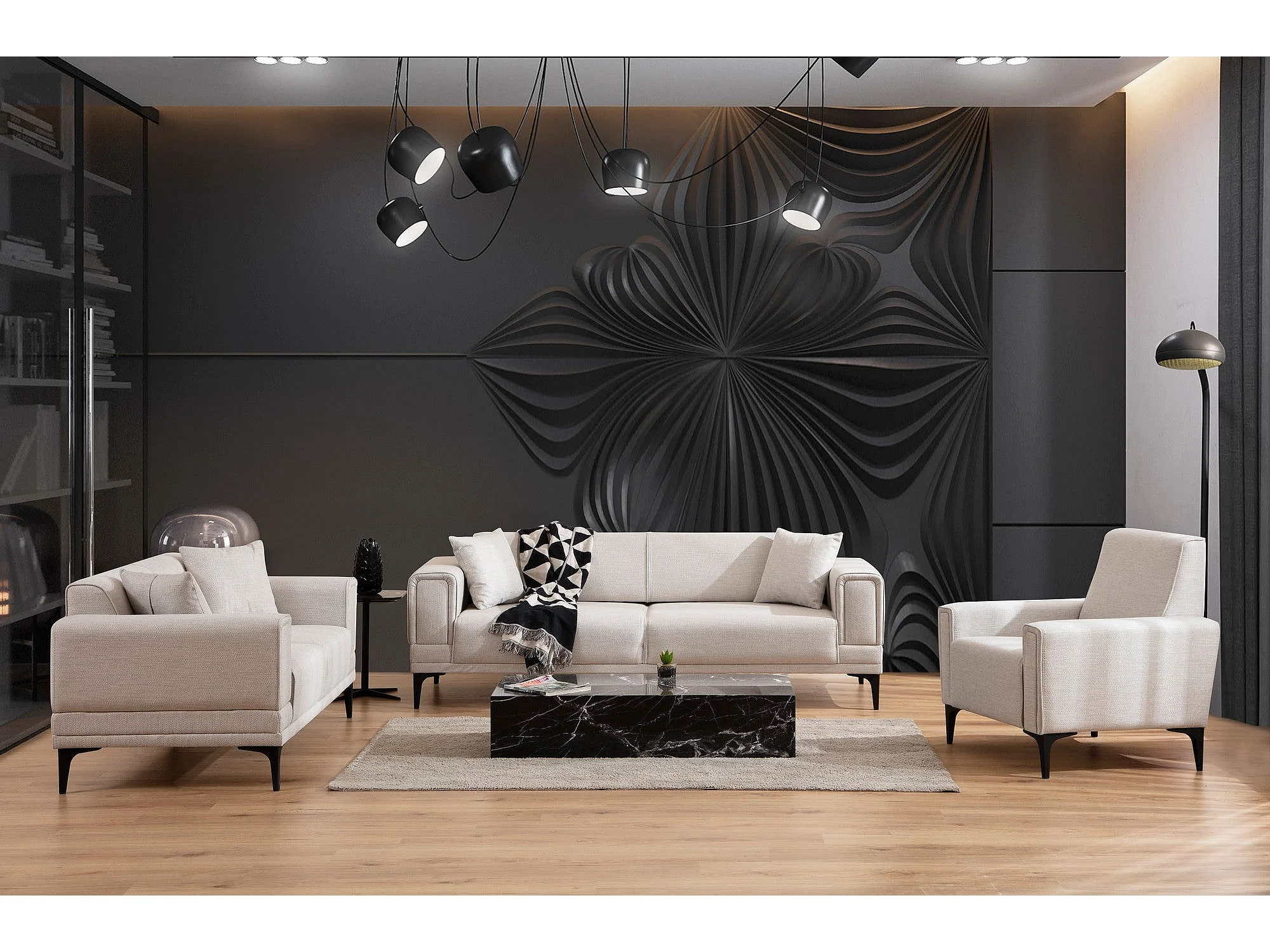 Elegante 1-zits fauteuil, crèmekleur, 100 cm x 100 cm x 80 cm | Structuur van beukenhout en spaanplaat, 100% polyester, 28 DNS-schuim | Mode