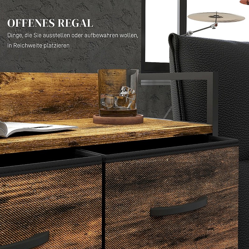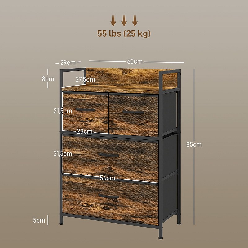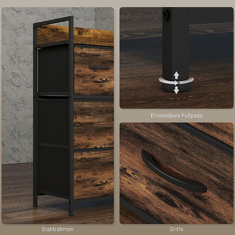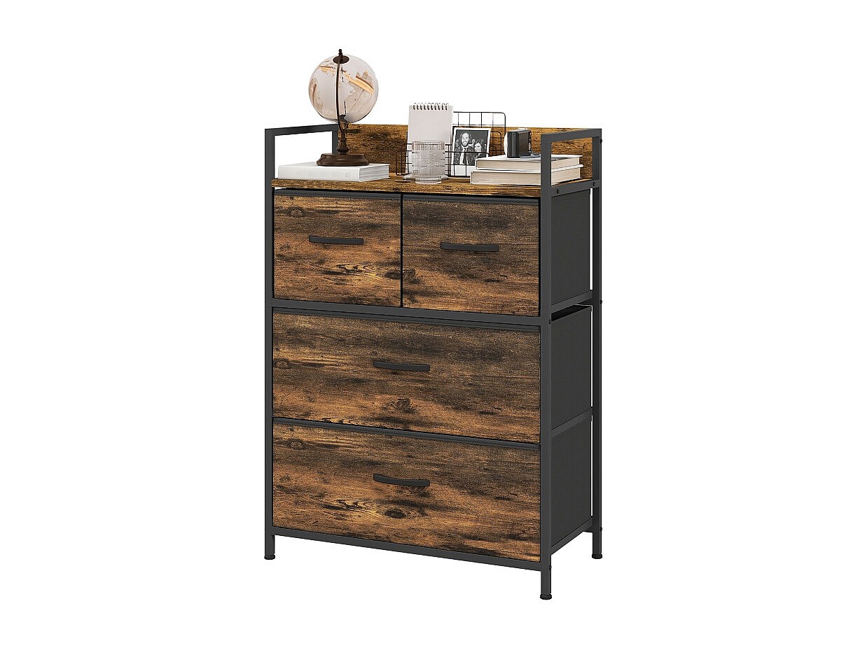 Elegante ladekast 60 x 29 x 85 cm – 4 stoffen lades – Modern design dressoir in bruin en zwart
