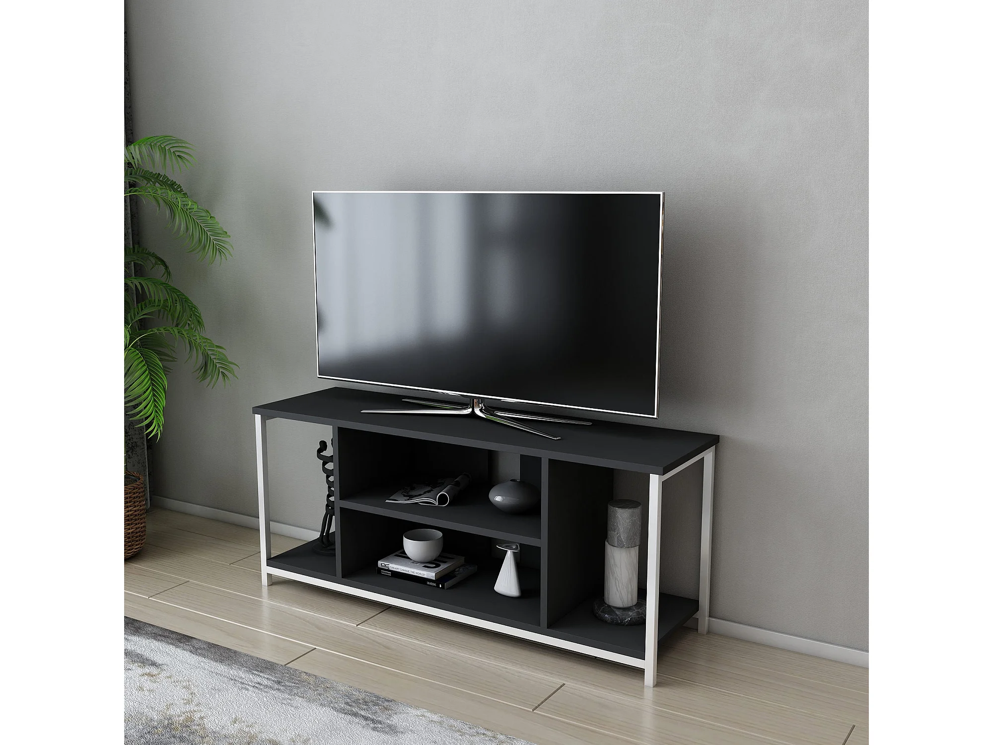 TV-meubel – 120 cm x 48,2 cm x 26,4 cm – Antraciet en zilver – Melamine gecoate spaanplaat