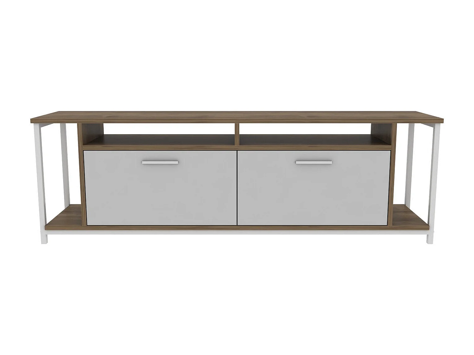 Elegante tv-standaard, 160 cm breed, wit en notenhout, 100% melamine gecoate spaanplaat, 18 mm dik | Modern design voor woonkamers en entertainmentruimtes