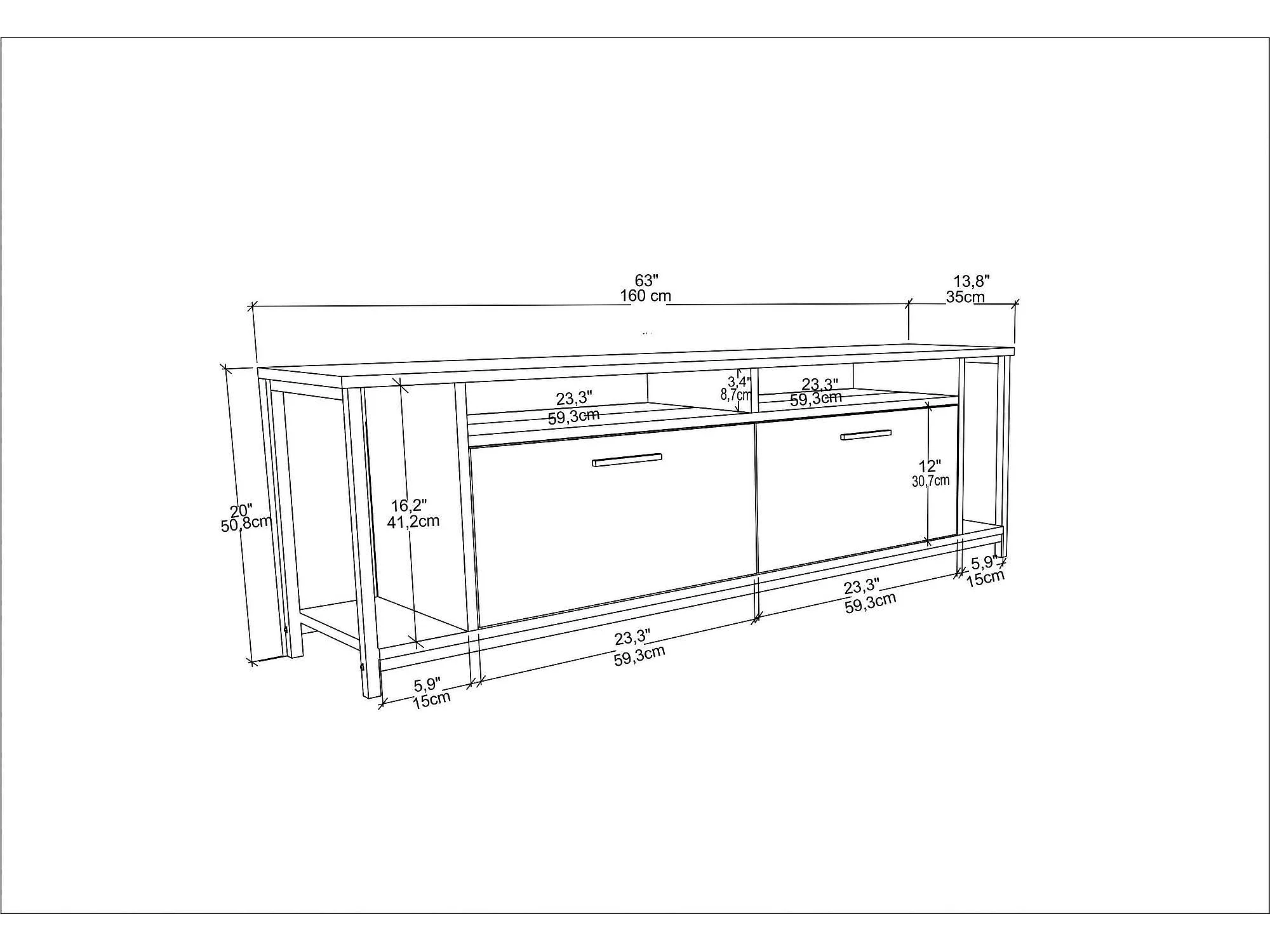 Scandinavische tv-standaard, wit, 120 x 35 x 55 cm | 100% melamine gecoate spaanplaat, 18 mm dik, stevig metalen frame | Elegant en functioneel design