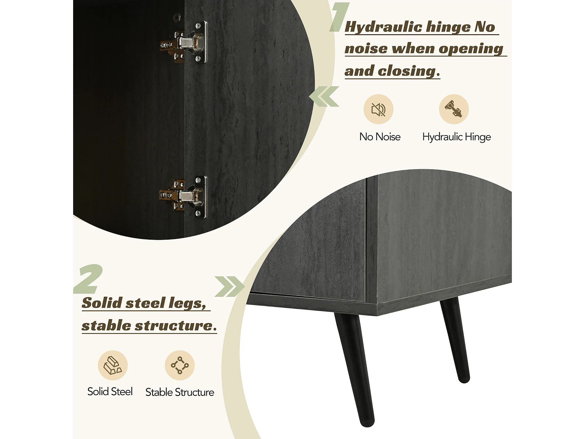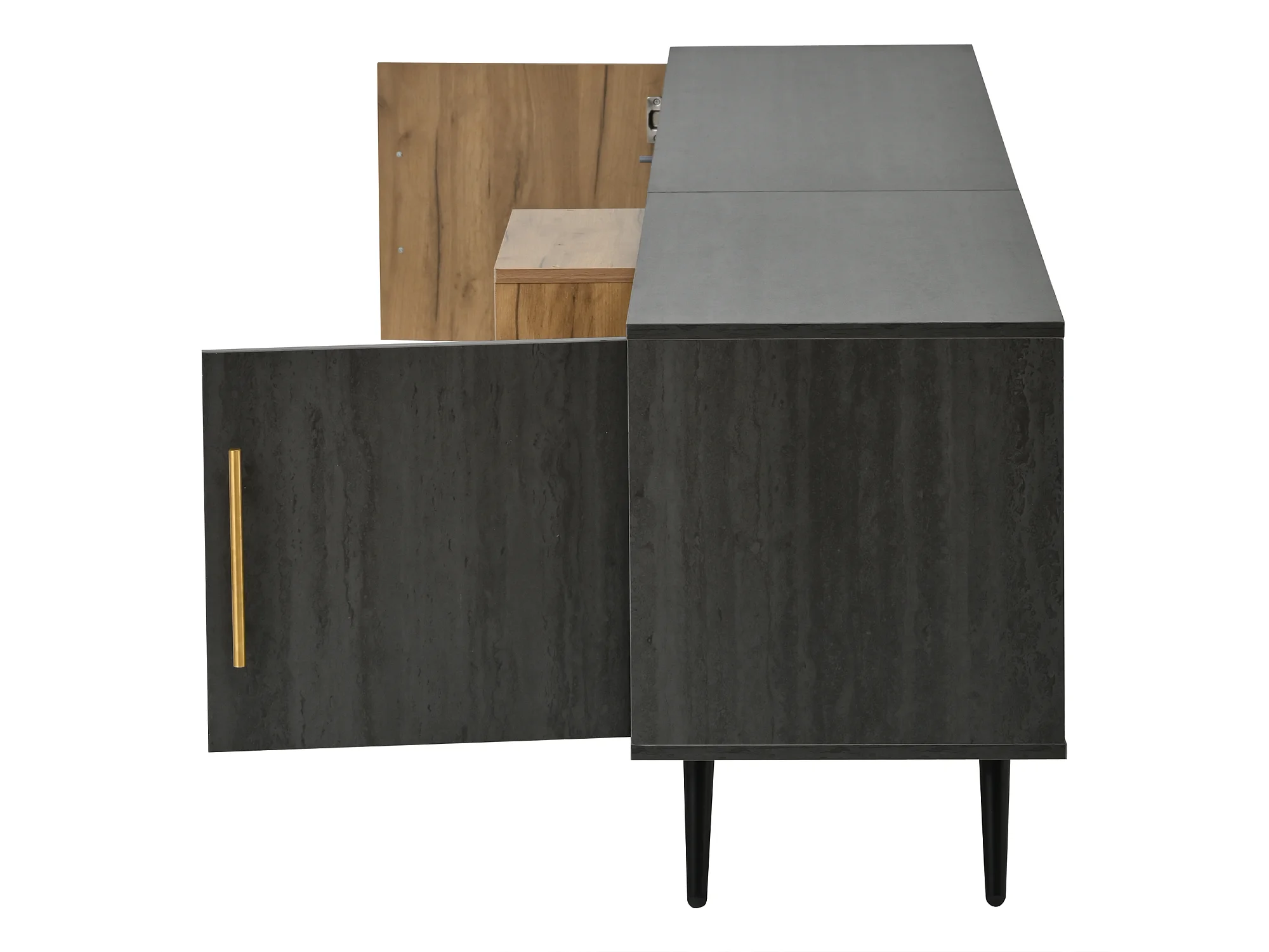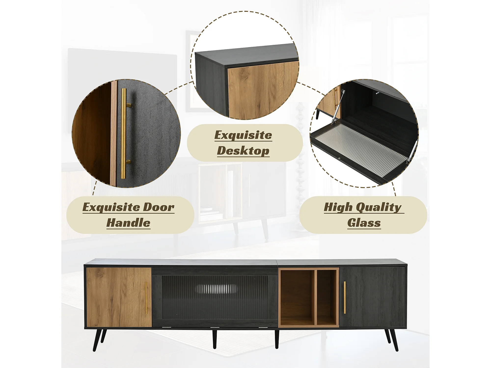 Elegante tv-standaard, 200 x 40 x 55,5 cm, donker hout, met neerklapbare glazen deur, voor de woonkamer