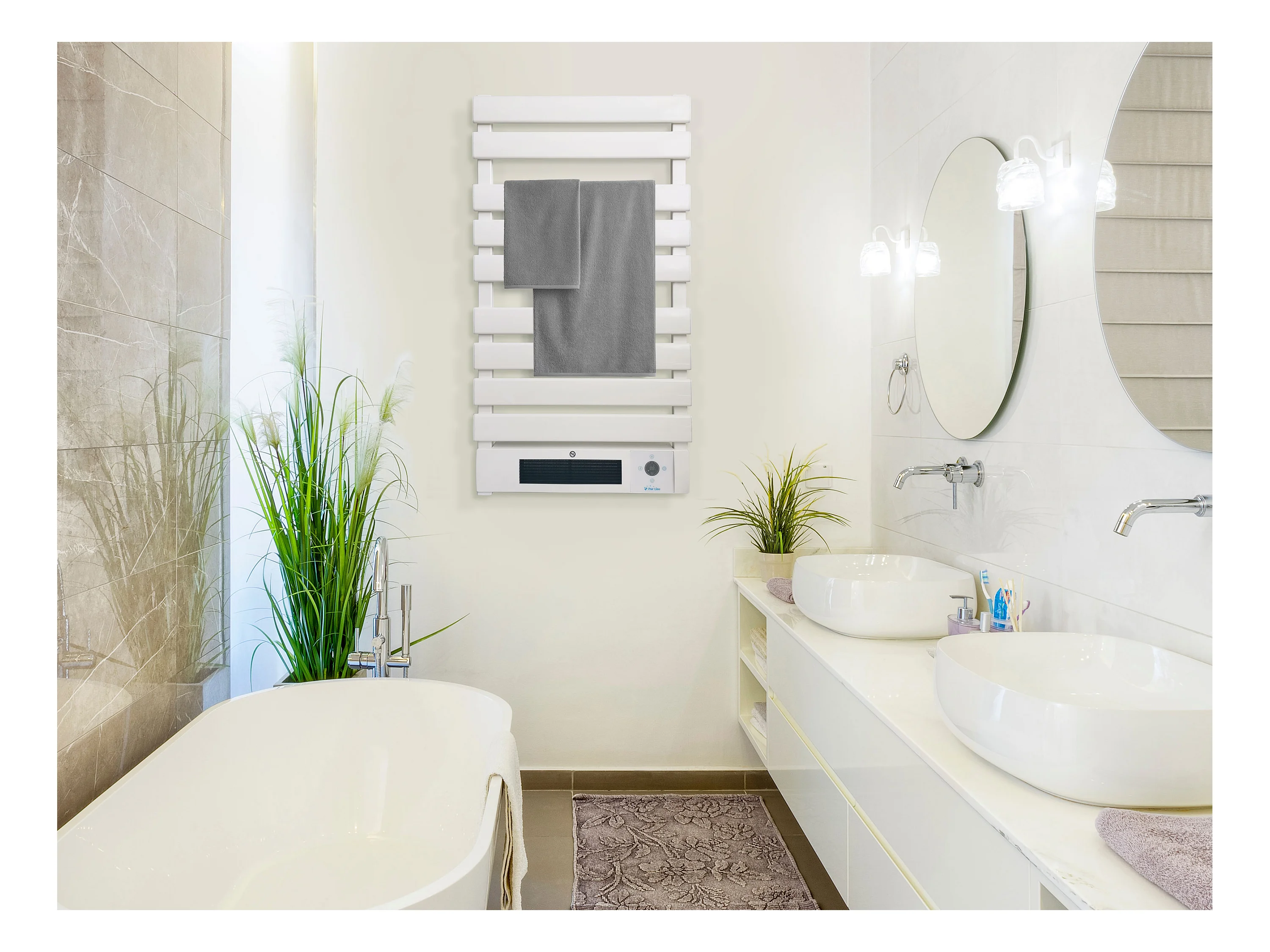 Elektrisch handdoekrek 1500W in aluminium, wit, LED-display en WiFi-bediening