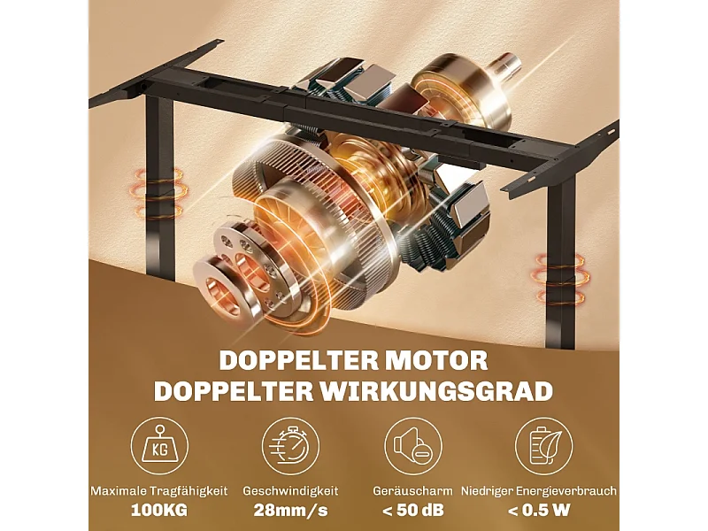 Elektrisch verstelbaar bureauframe, dubbele motor, 3-positie geheugen, zwart staal (83x45x70-118cm)