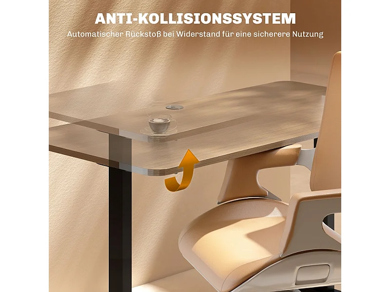 Elektrisch in hoogte verstelbaar bureau, ijzeren constructie, modern design, zwart en naturel (140x70x72-116cm)