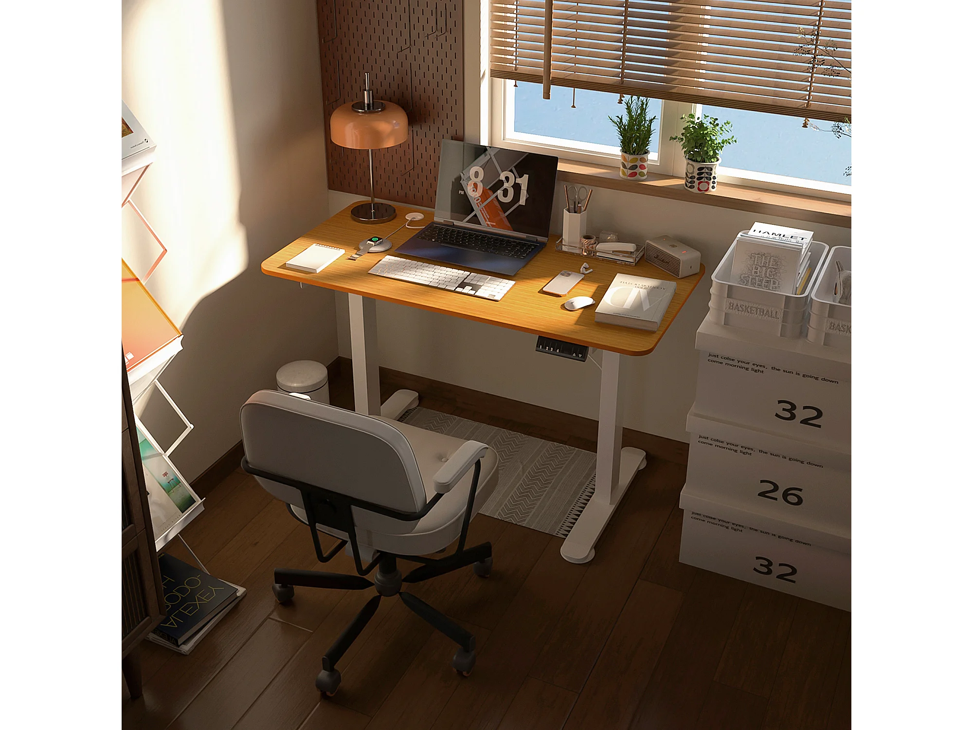 Elektrisch verstelbaar sta-bureau, 120x60 cm, natuurlijk hout, antibotsingssysteem en kabelorganizer (72-116 cm)